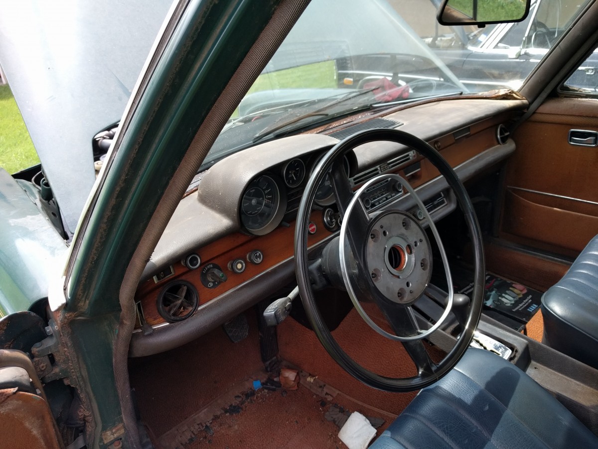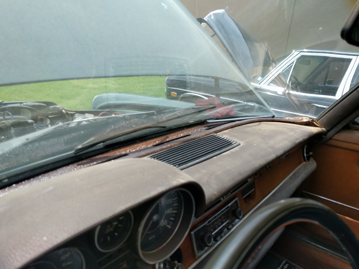 What Makes It Special? This car was bought new in Oklahoma and remained there all its life. Last registered in 2000 and spent 15 years in a shed until it was acquired by the present owner in 2016. Thought it was purchased as a parts car for another project a little adjustment and a fresh battery got the engine running and thus began a restoration project. The fuel pump was cleaned and serviced, inline fuel filter added to catch any debris from the tank. It has the original hydraulic compensator in the rear and no evidence of leaks or negative camber. A little cleaning revealed that the body was surprisingly rust free. The broken cooling fan and cowling were replaced. The brake master cylinder, all 4 brake discs, calipers and brake lines were replaced to get the now moving vehicle to also stop. Car shifts, drives, and stops. The original seats inside were shot and another good set of MB Tex seats have been installed. The dash is cracked but the seller does have another professionally refurbished dash pad available for purchase. The tires are old but hold air. Original metal wheels are present but the seller is keeping the hubcaps and the original Becker radio.