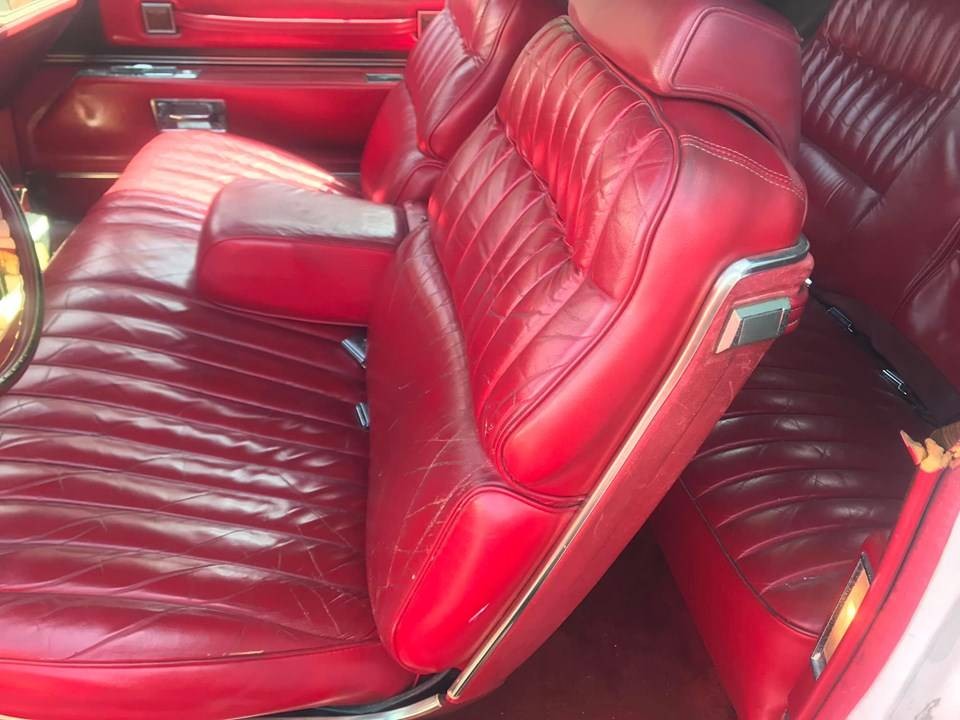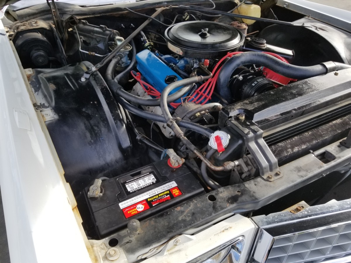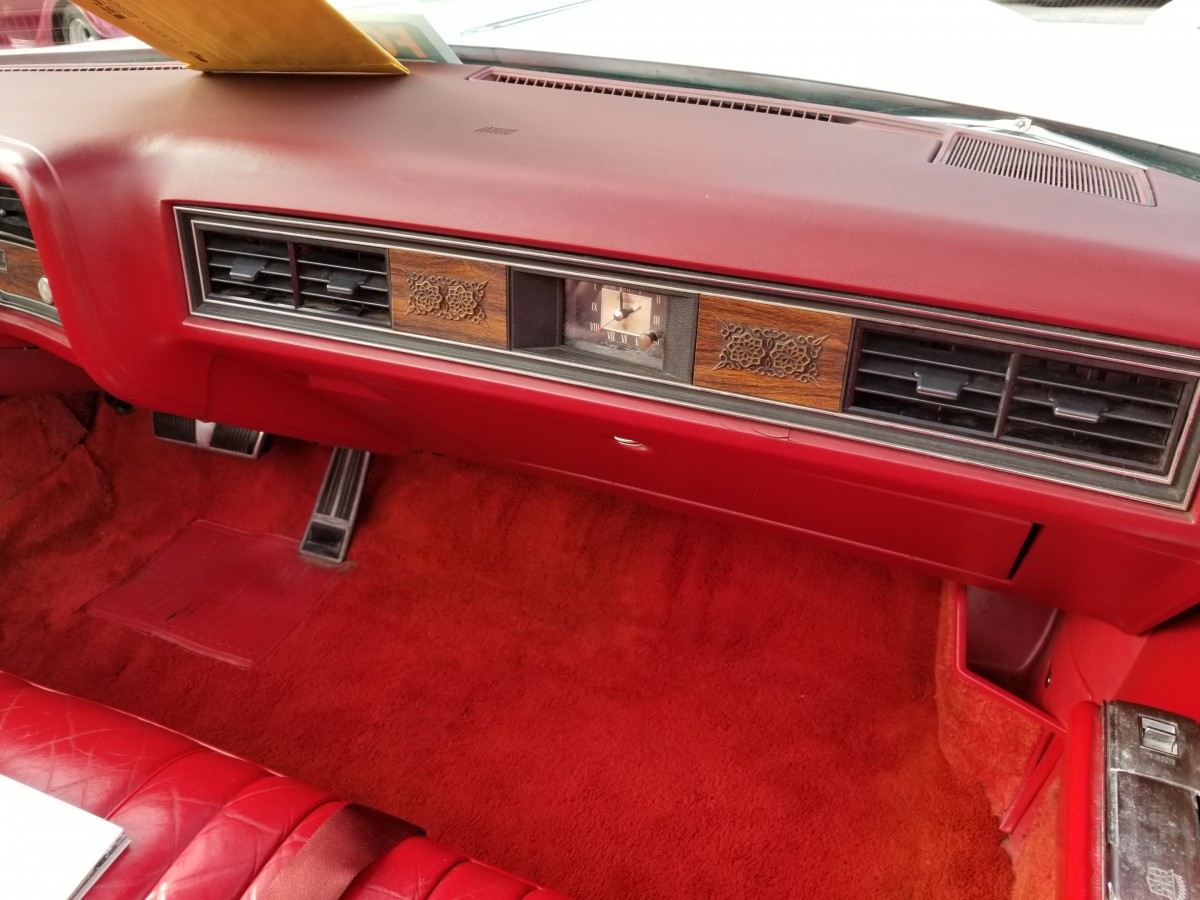 Under the hood, the 500 cui V8 is running great. It received a valve job with fresh lifters and pushrods. It also has been updated to an HEI ignition, which should improve reliability and possibly even a slight improvement in performance. Prior to starting it up, he had the fuel tank cleaned out and the carburetor fully rebuilt. Stopping all that engine and luxury is a big task, so he also rebuilt the calipers, installed new pads, new rear shoes and wheel cylinders, plus all the hardware that goes along with them.