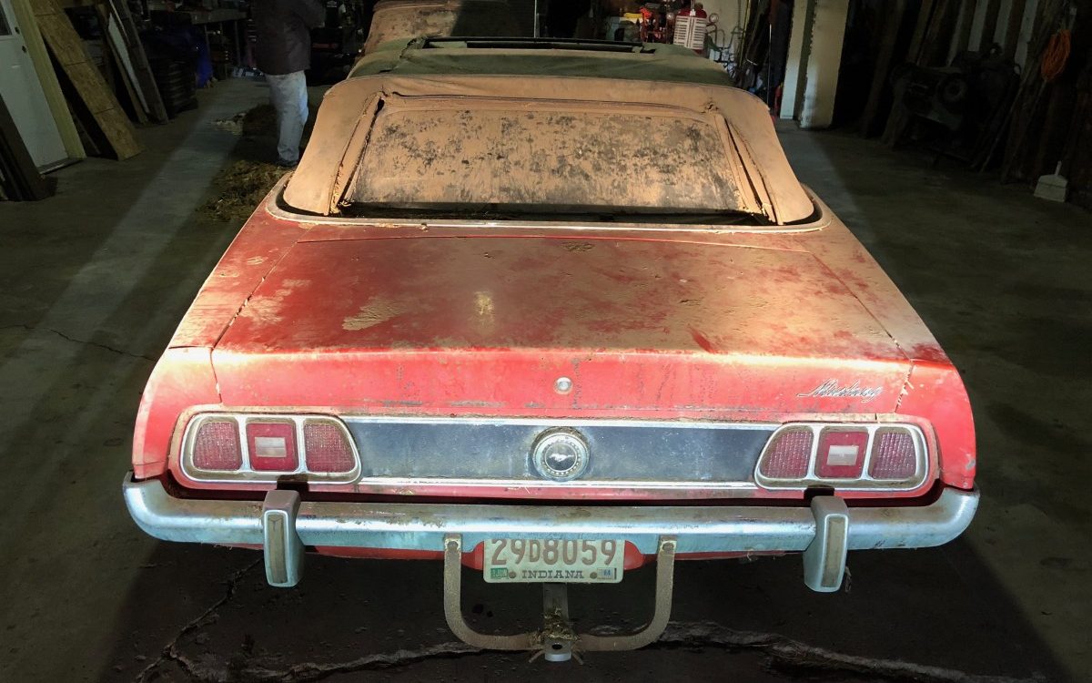 After sitting in this Indiana barn for 30+ years, this 1973 Mustang Convertible is going to need a full restoration, but it’s complete and could be a fun project to tackle. Reader Brad O found it in the barn and was able to buy it. The previous owner claimed to have driven it into the barn and that it didn’t have any mechanical issues when parked. It looks like it’s shared the barn with another convertible (early Mustang?), so perhaps they parked them one winter and simply never pulled them back out? We may never know the full story, but if you’d love to have this barn find, you can message Brad via the form below!