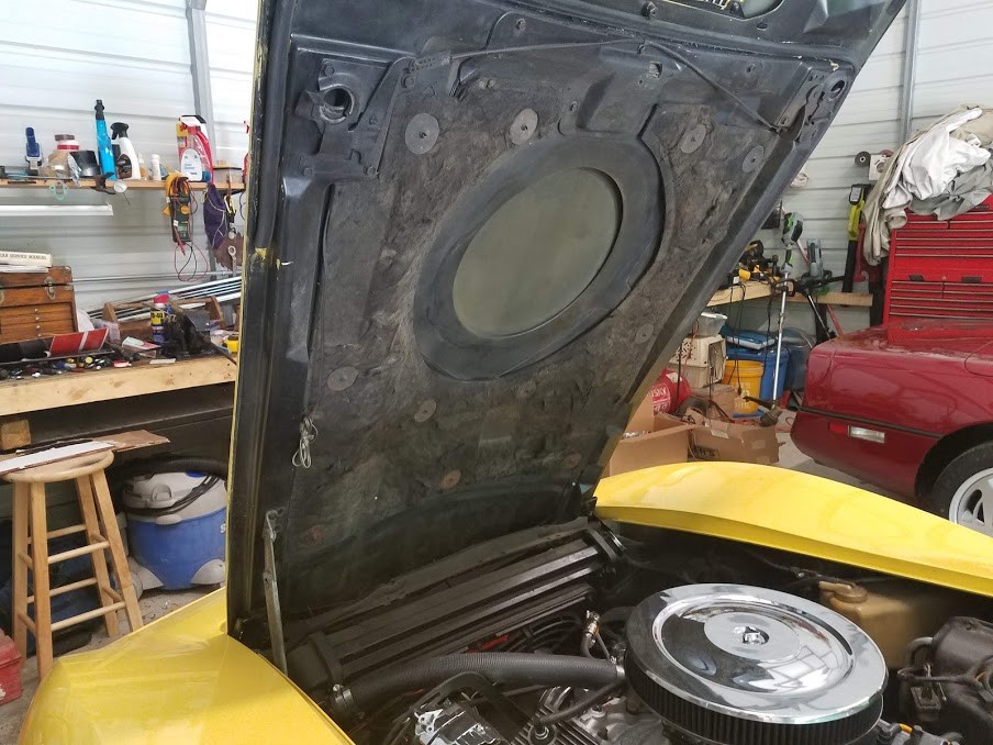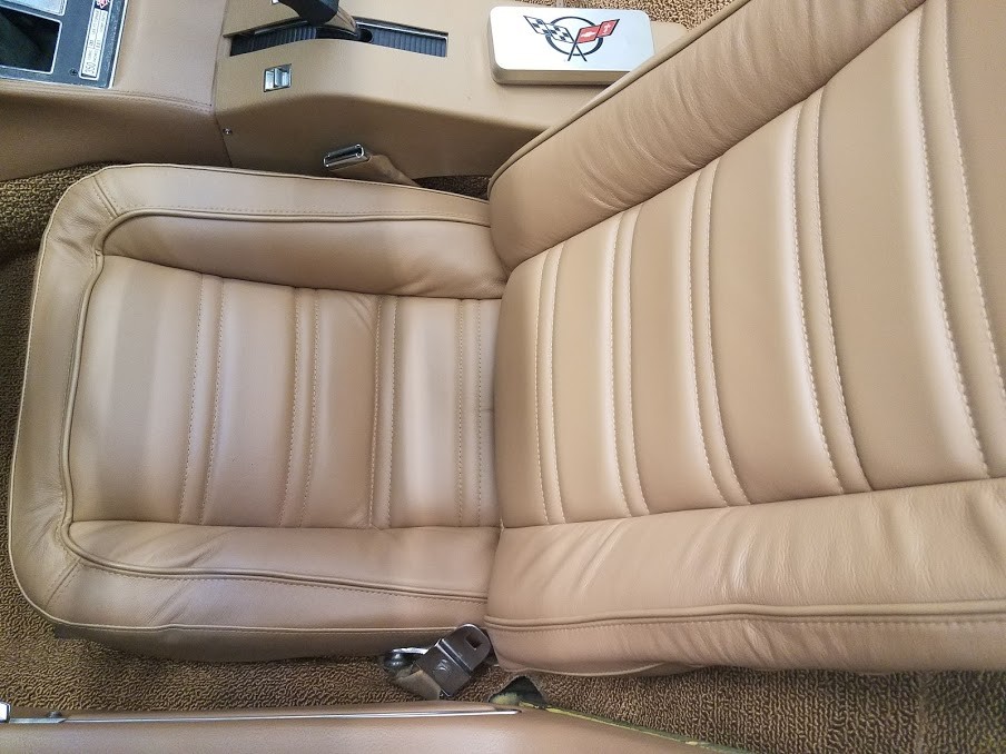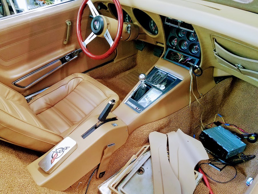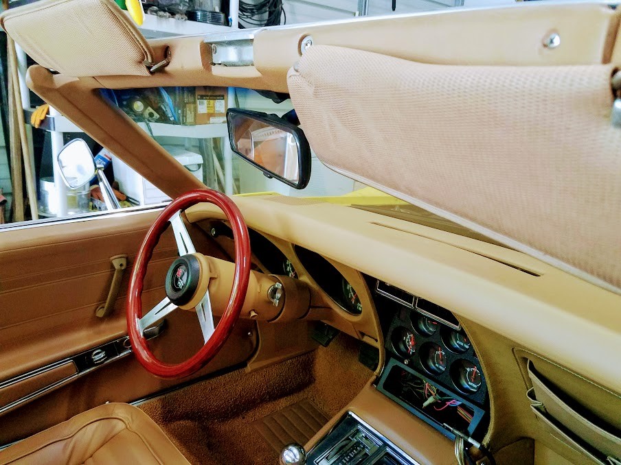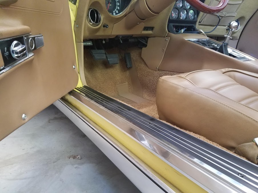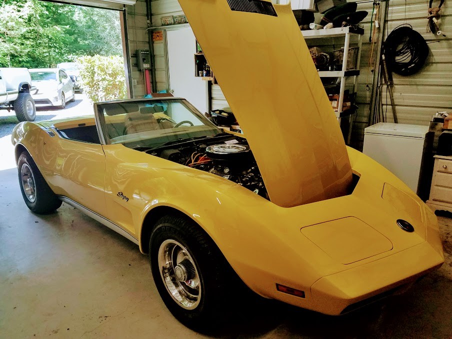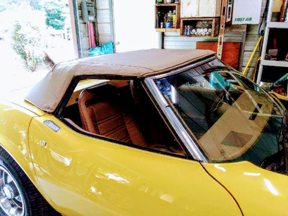 What Makes It Special? The 1974 car is a numbers-matching example with the preferred L82 engine and 4-speed manual transmission. The paint is a desirable color known as Bright Yellow, and I believe it has been repainted at least once. ’74 was the final year for dual exhausts, no cats, and decent horsepower before significant performance losses in 1975. The interior features new Saddle leather seating surfaces, and you’ll note one of the seats is missing. The seat restoration was part of the project the owner was finishing before his passing, and his wife is having the seat finished and re-installed prior to sale. The top will also be re-installed at this time; it is not new but it is in very good condition and does not need replacing at this time. There is no rust to speak of on the Corvette. It was originally equipped with air conditioning but those components have been removed are no longer available.