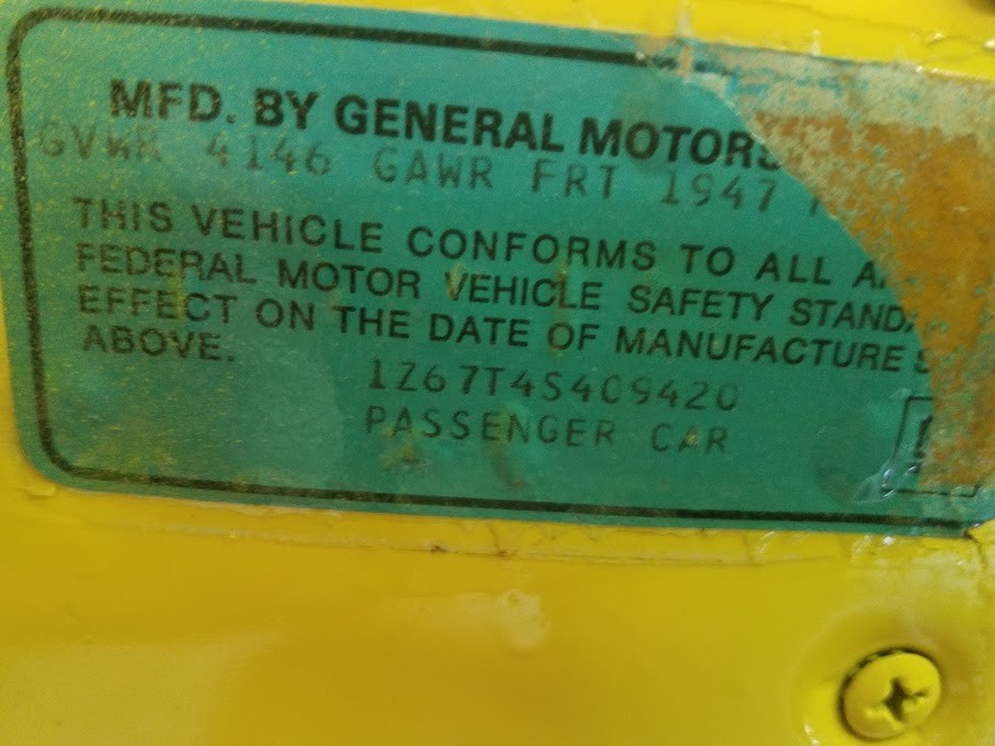 - VIN: 1974 – 1Z67T4S409420; 1989 – 1G1YY3184K5101221
