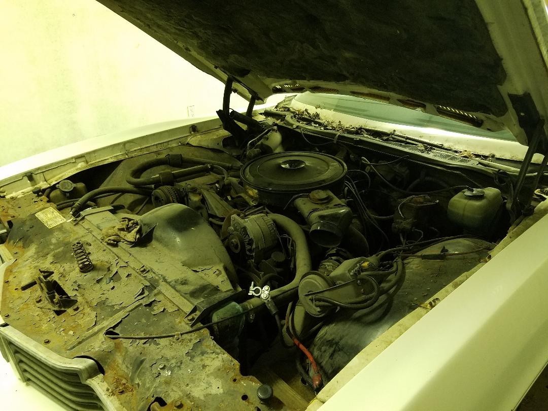 The car is in excellent original condition and has never restored, has the original white paint and white vinyl interior that will probably clean up reasonably well. The car has never seen winter except for a few weeks when it sat in the lot at a local garage while the brakes were being replaced around 2005. No rust on the undercarriage except the normal surface rust one would expect on a car of this age. The body is very straight, no dents on the body, and has one rust spot on the front of the hood from sitting at the garage.