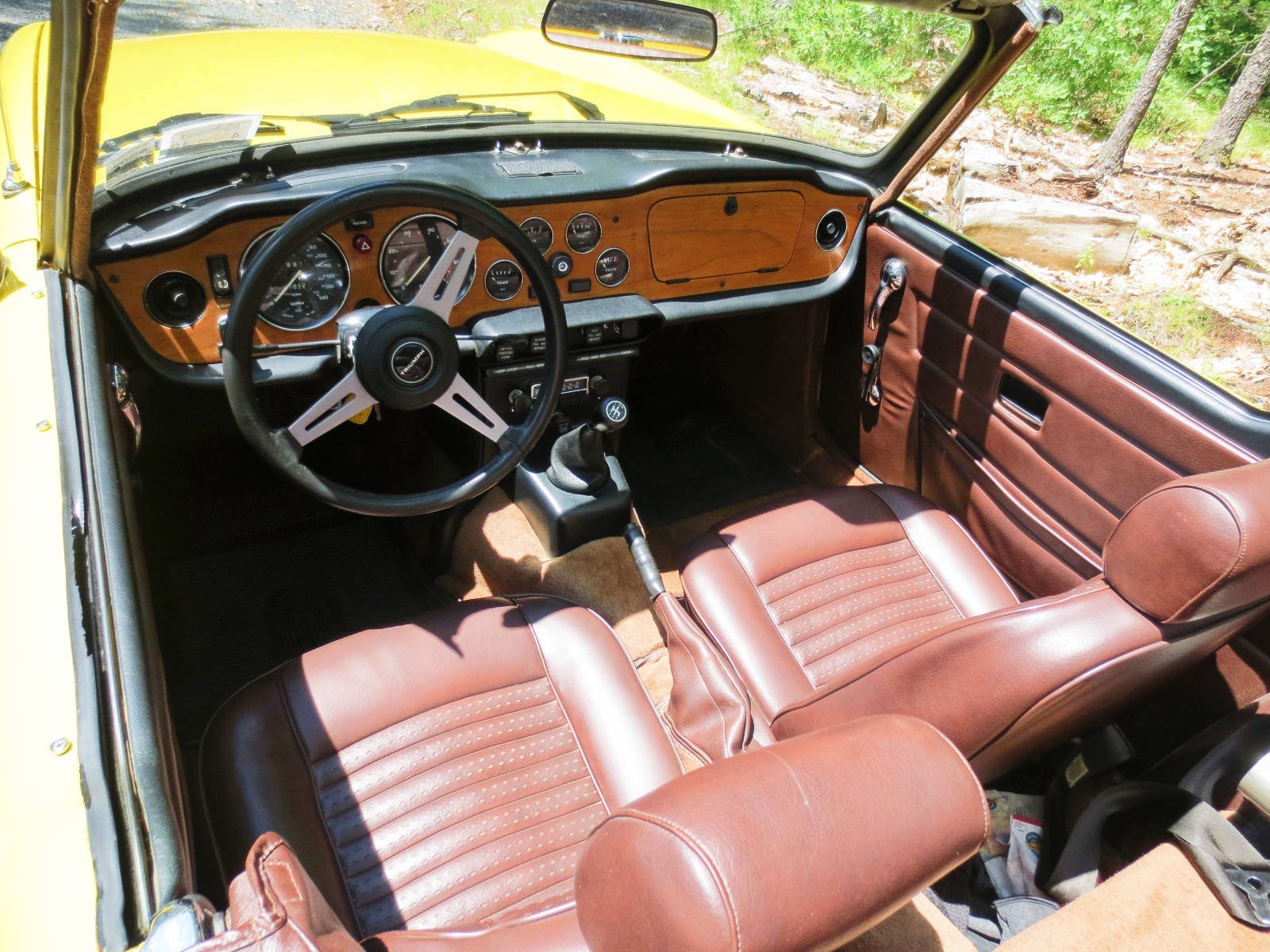 i had a ’71 TR-6, same color as this one and i believe same steering wheel as this one. Bought it from a stockbroker for a song and then sold it to my good buddy, when i bought my new ’73 2002. It had a fiberglass hardtop, same color as the car! It was an awesome car, but for an occasional electrical quirk and the magic carpet ride, that came with box unit construction. If hit lotto, i’d buy this car in a heartbeat! :)