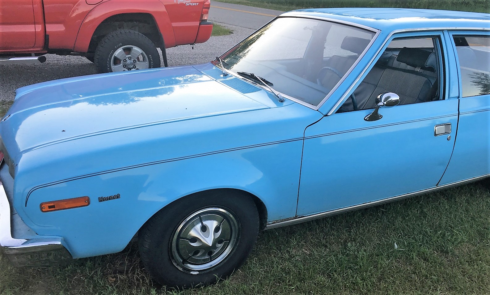 wish i still had my 1975 hornet x hatchback levi interior . silver blue stripes. 304 3 speed standard. good looking. rare now.