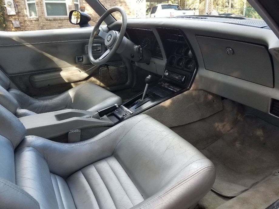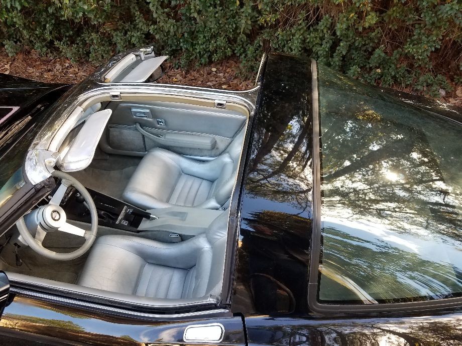 Another feature of the Indy Pace Car replicas would be silver leather seats (or, silver leather with gray fabric inserts) and gray carpeting. I have never owned a car with T-Tops but I would have to believe that it’s a unique way of keeping the structural rigidity intact while letting the sunshine in and the breezes blowing. They have spent $3,000 on maintenance over the last five years and they have also upgraded the exhaust system and the radio. The interior looks fantastic in this car but they say that the door panels and leather seats are showing some normal wear.