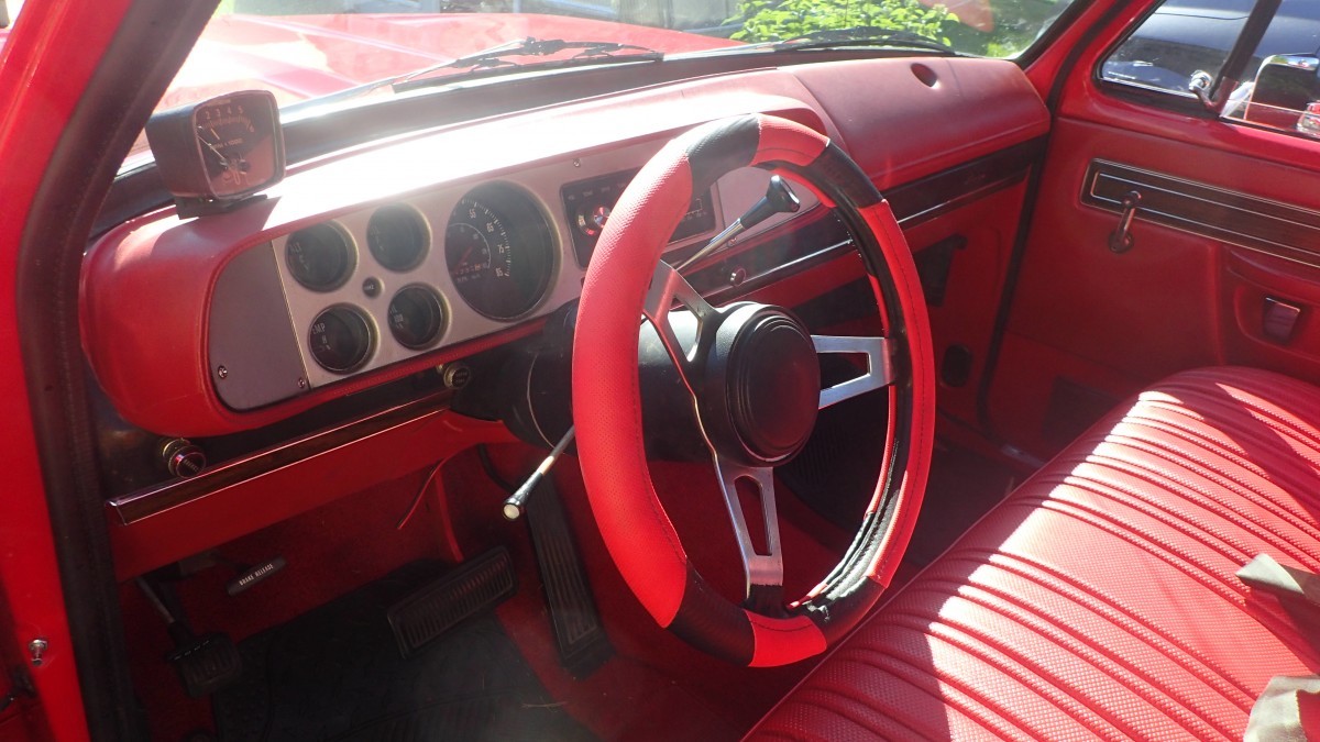Nice truck. Looks original, except for rims, tonneau cover, wrong tach, trailer hitch.