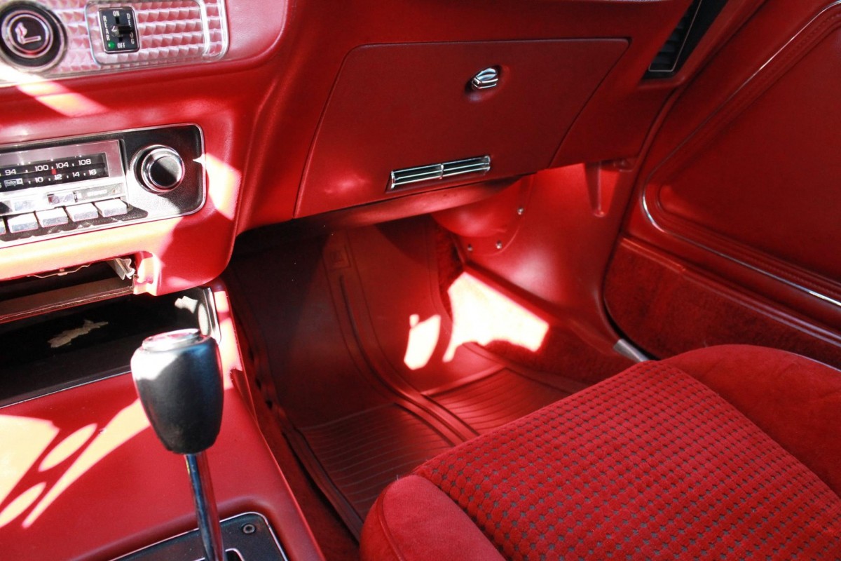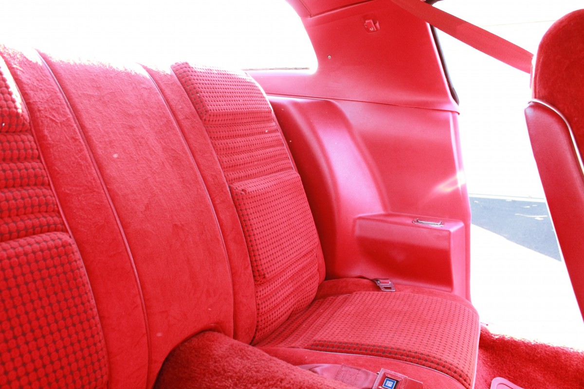 Interior Condition: The interior is pristine with original floor mats, no stains or tears in seats, carpet or headliner. The interior is all matching carmine red interior carpet, seats, steering wheel and with color match seat belts (which is rare). Interior clock still works. The car has power windows, tilt steering, AC, rear defrost and cruise control.