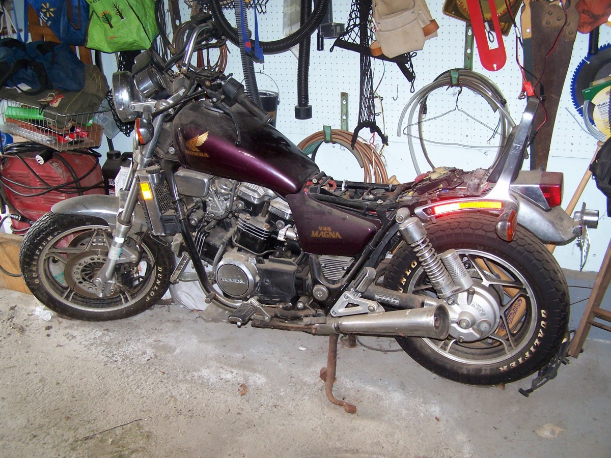 The V-45 Magna (750) was a very fast machine for a 750. I rode one of these, same color and all, and really enjoyed it. Their handling wasn’t great, but you could improve it by installing a fork brace.