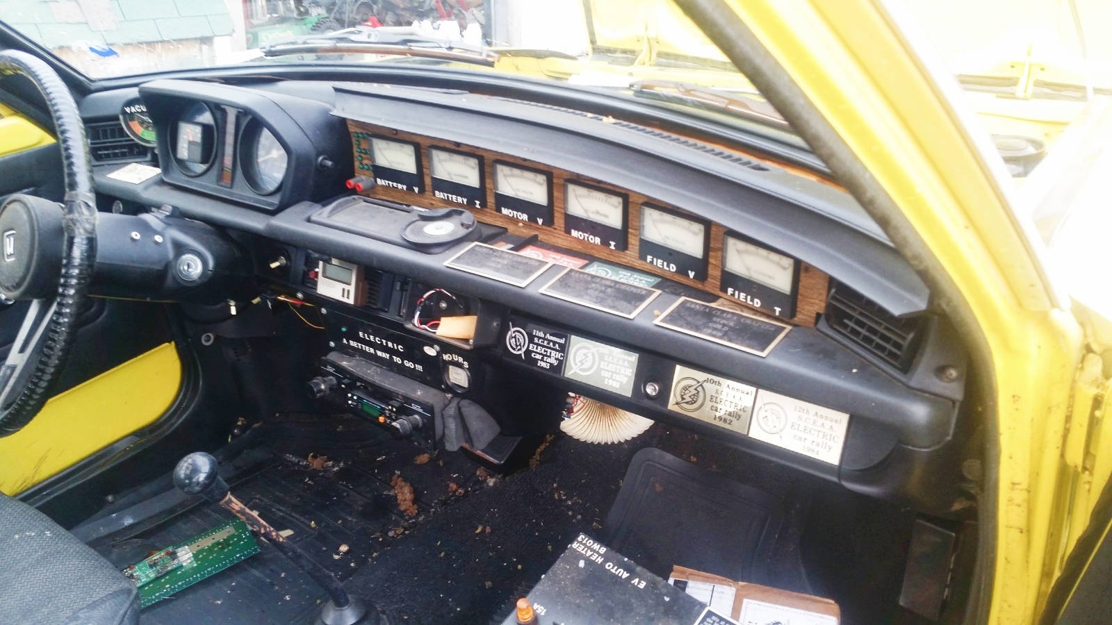 Seller Description: My 1975 Honda Civic Wagon was converted to all electric in 1981. It’s a California car, with no rust outs and mostly original paint. I found this car under a tarp out in the country. It was converted by Bill Williams,who at the time was a leading authority on electric car conversion. It uses 18 lead acid 6 volt batteries. He logged 91k miles as a electric Civic.