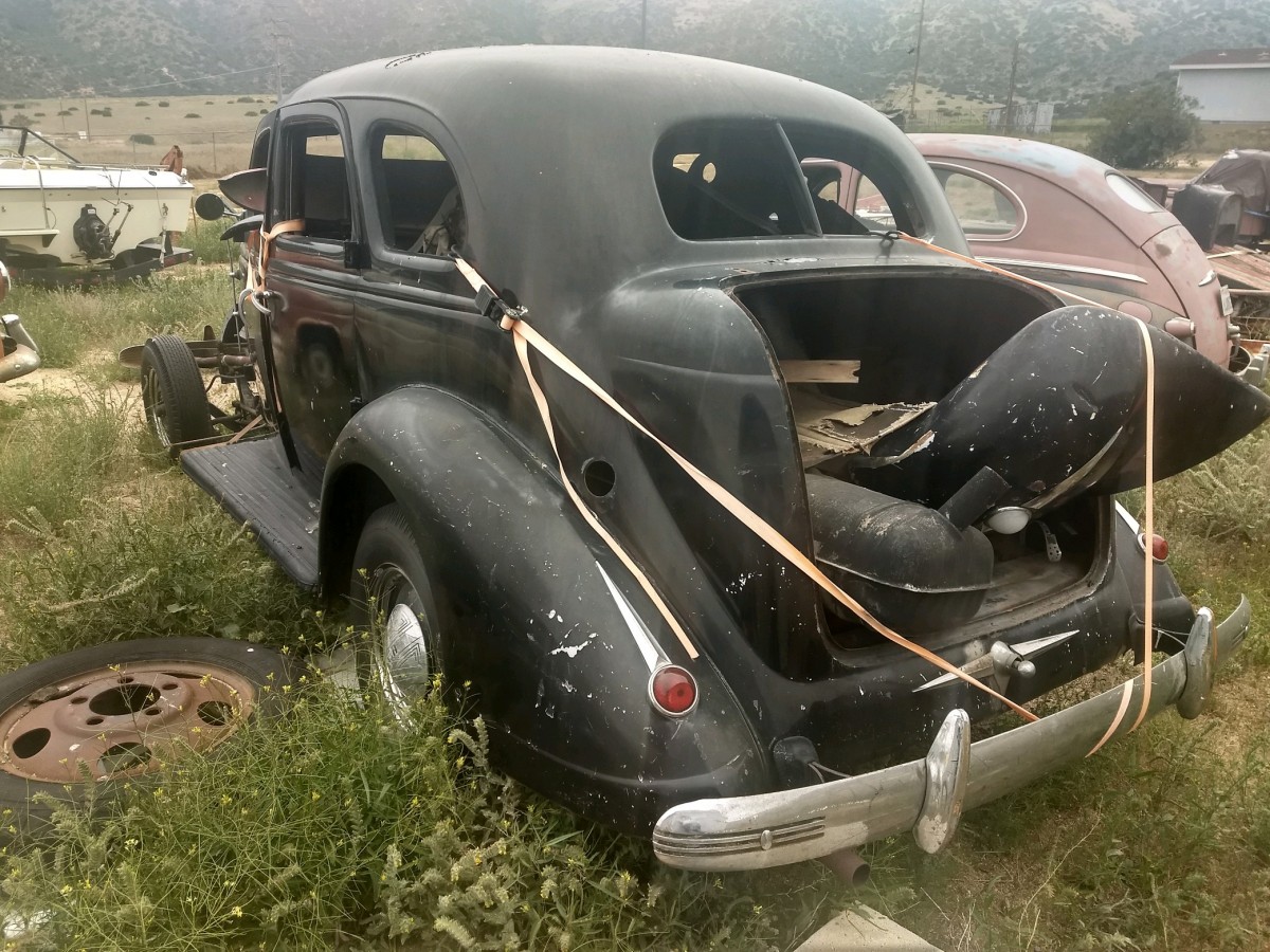 Looks like it was stashed away in a bone yard with other old cars, just left to die. Someone will surely purchase this relic and restore it to former glory.