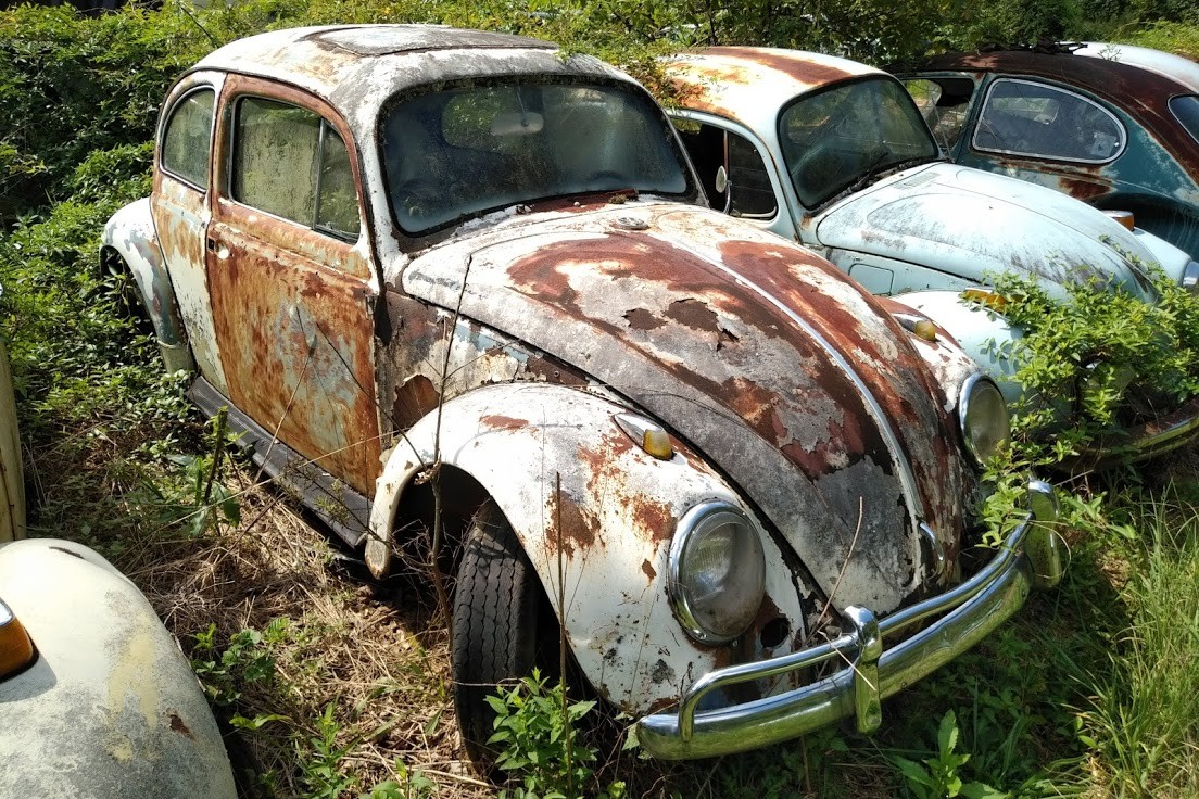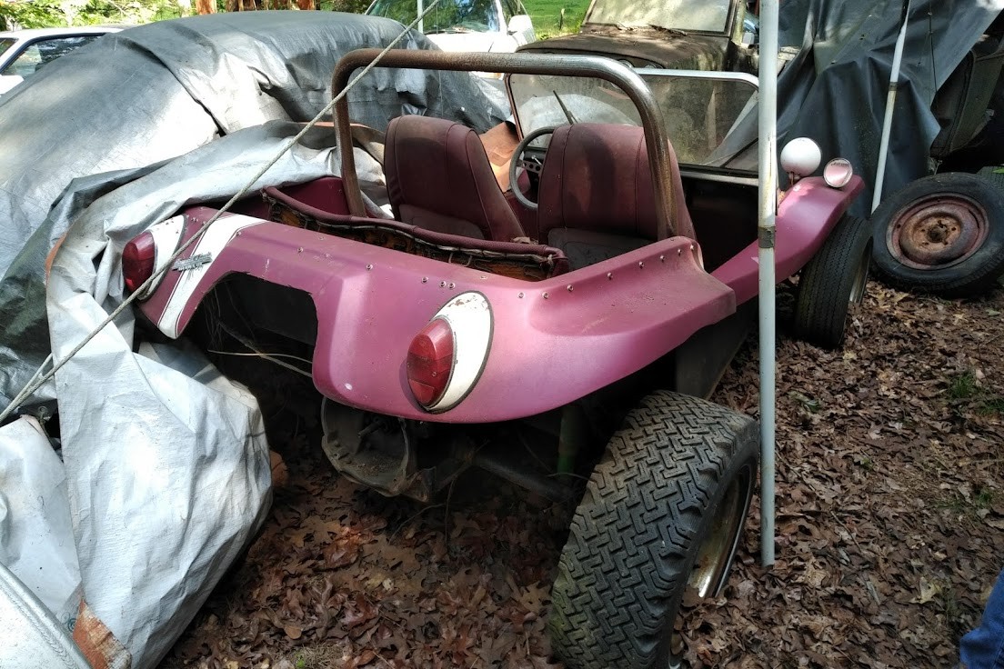 I thought this was a Meyers-Manx (like so many others who have been fooled) but it’s actually a fairly rare copy known as a “Howellcraft.” This company was based in nearby Atlanta, so it’s not surprising to see one turn up here. The motor is stored on a pallet next to the dune buggy, and the interior and body remain in very good condition with just one small crack in the front-right fiberglass. Watch for a dedicated Exclusive post on this one soon.