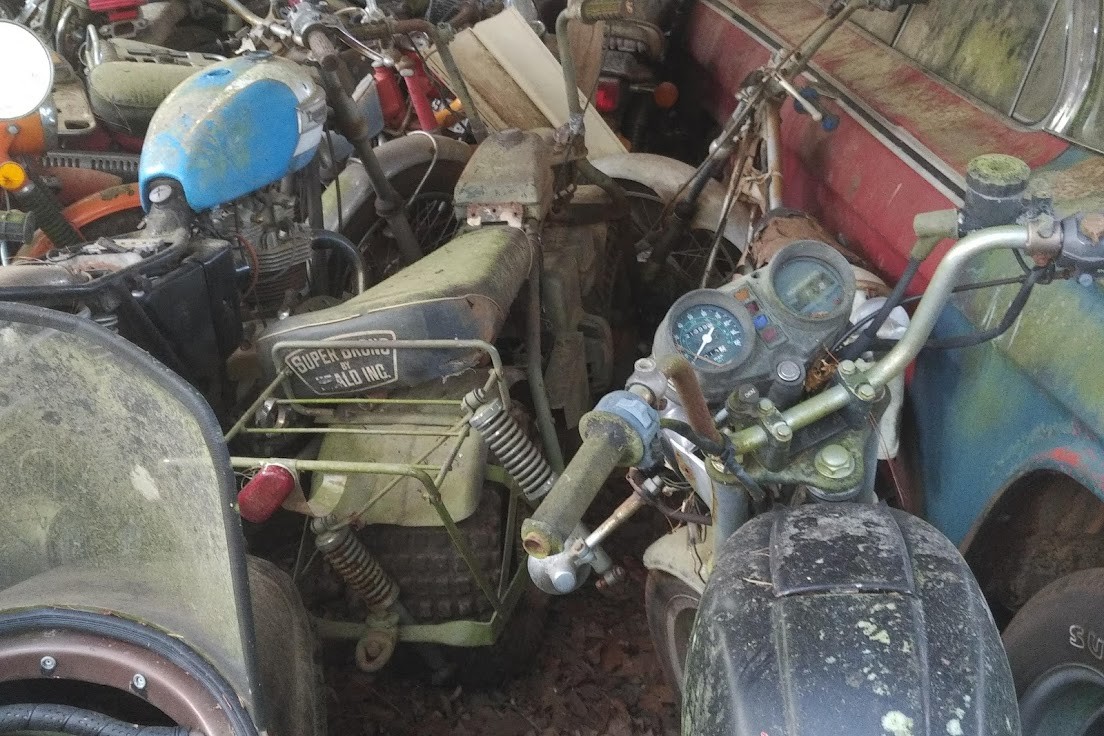 The motorcycle collection is largely a parts stash at this juncture, with few complete examples left. However, I couldn’t pass up the chance to photograph this Super Bronco bike, one of the more interesting combinations of scooter-proportions with off-road intentions. Please check out the gallery below for many other vehicles up for grabs, as well as some additional detail shots of projects photographed in the first go-round. Additional photo requests/questions about specific vehicles are welcome and I will do my best to get back to you as soon as I can. Finally, if you know of the location based on the photos seen here, please do not post the address in the comments (it will be removed). Thanks.