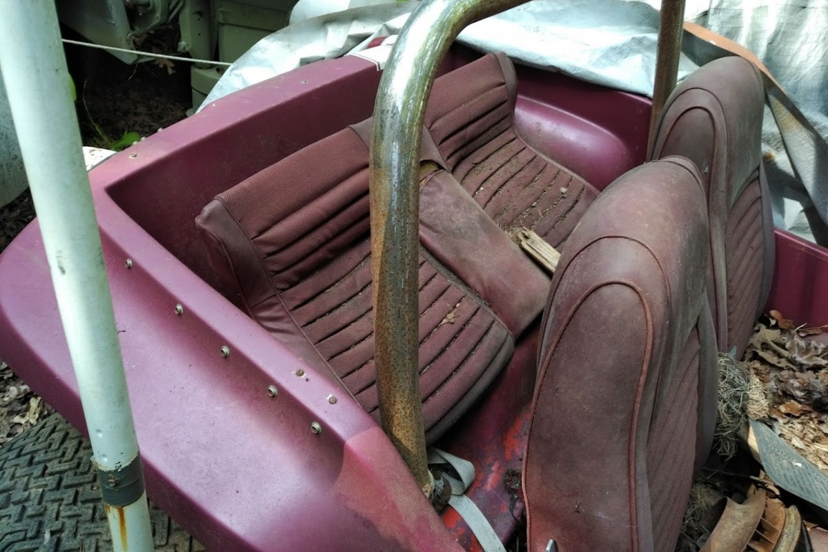 Body Condition: Since it’s fiberglass, body condition remains excellent, and from what I could see of the pan, that looked quite solid as well. There is a broken piece of fiberglass at the leading edge of the passenger side fender, but it’s very minor and easily repairable. The Howell Craft has been repainted at some point, with the current red and white scheme covering a former orange and black paint combo.
