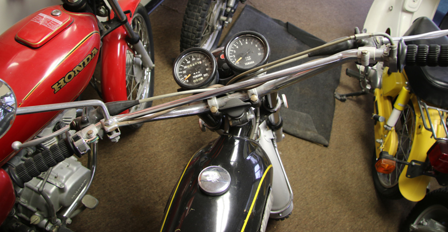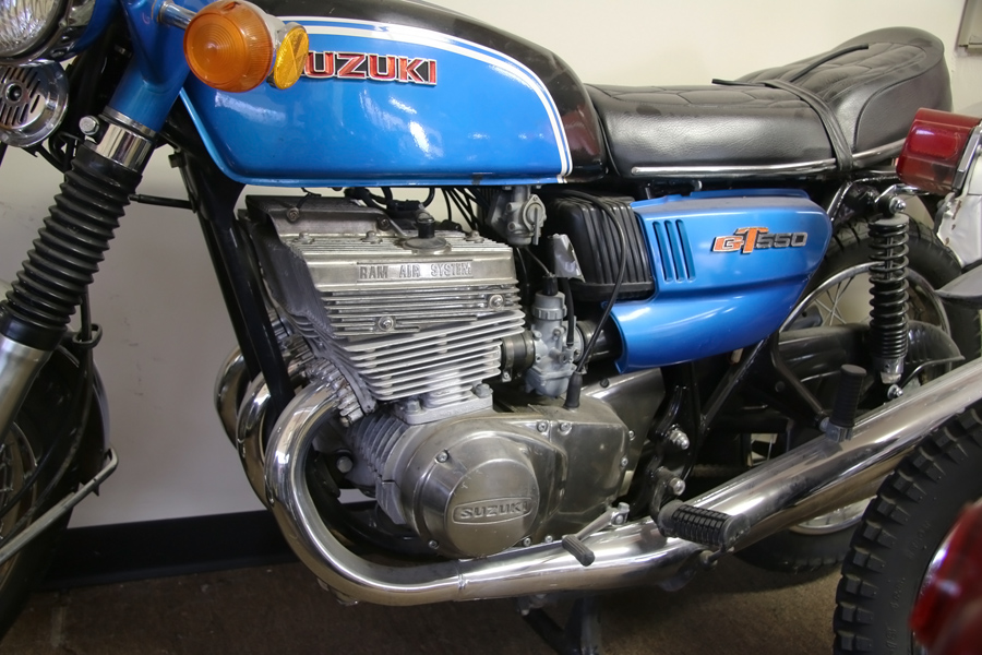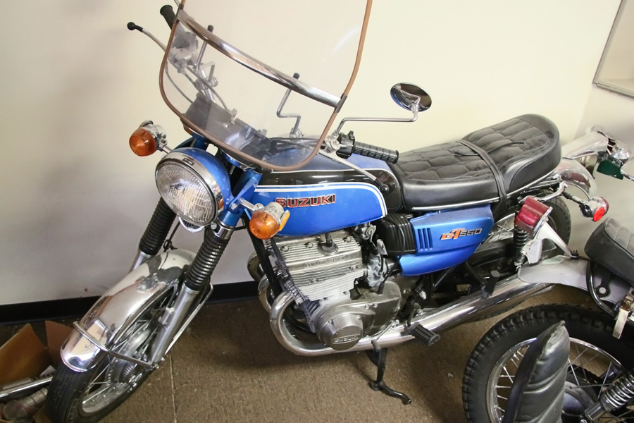 Suzuki GT550 – This is one of the larger bikes in the collection and with a 550cc 3 cylinder engine, it should do just fine around town or even on the highway. It’s odometer is showing just 767 miles, so this one could be a great buy!