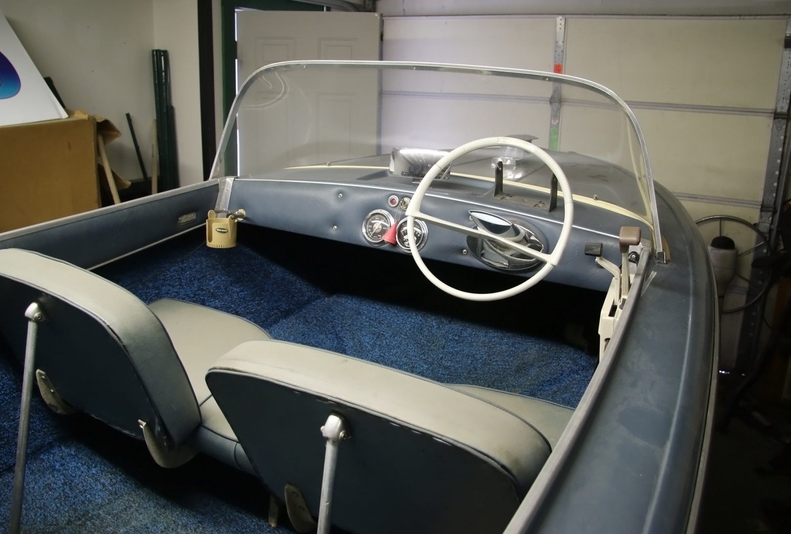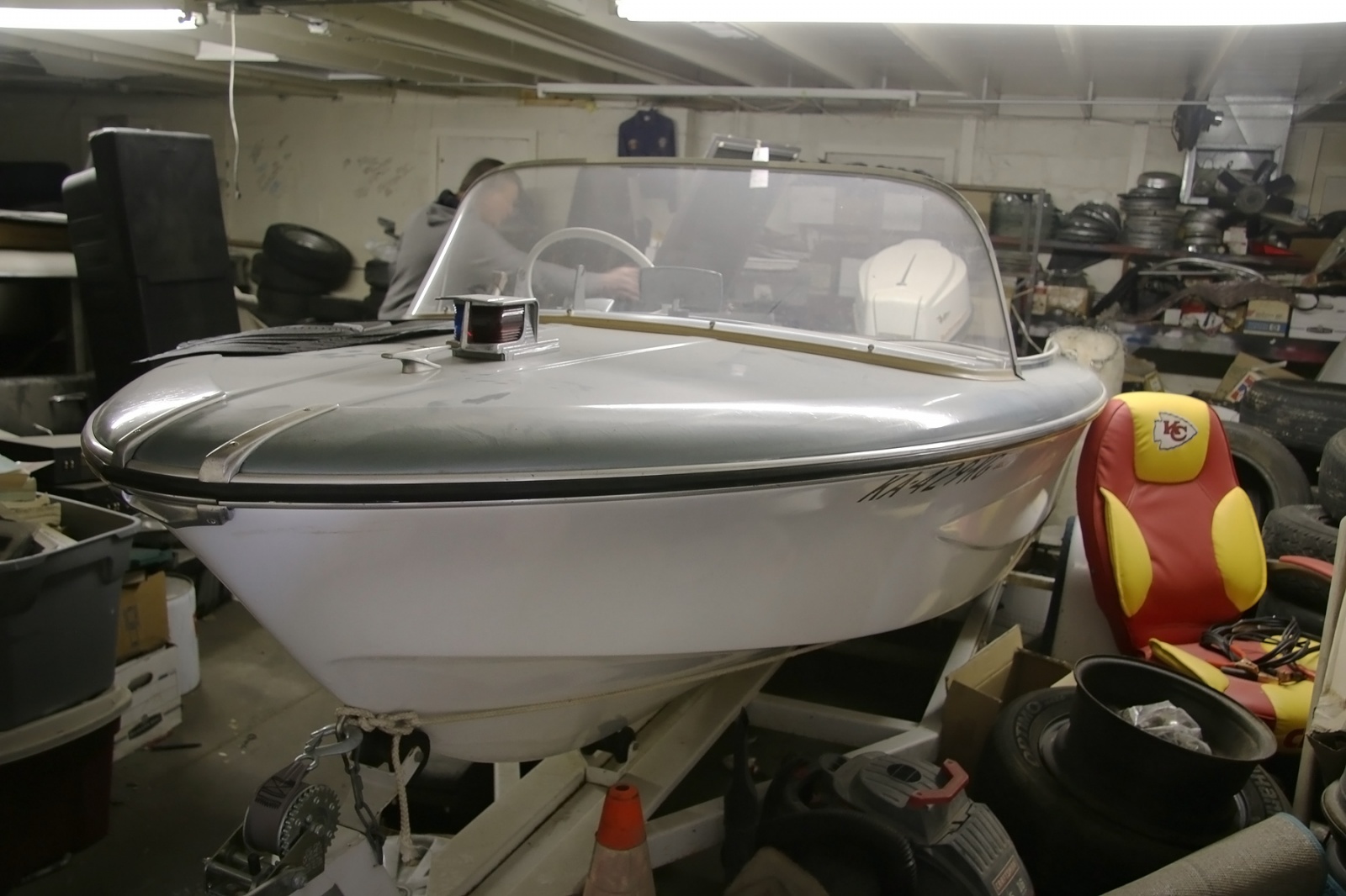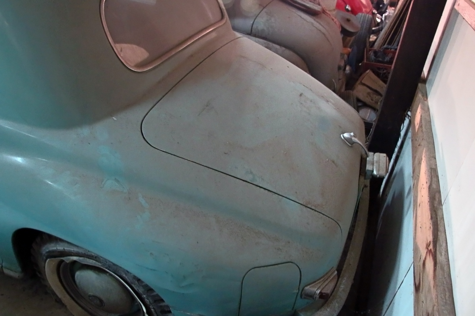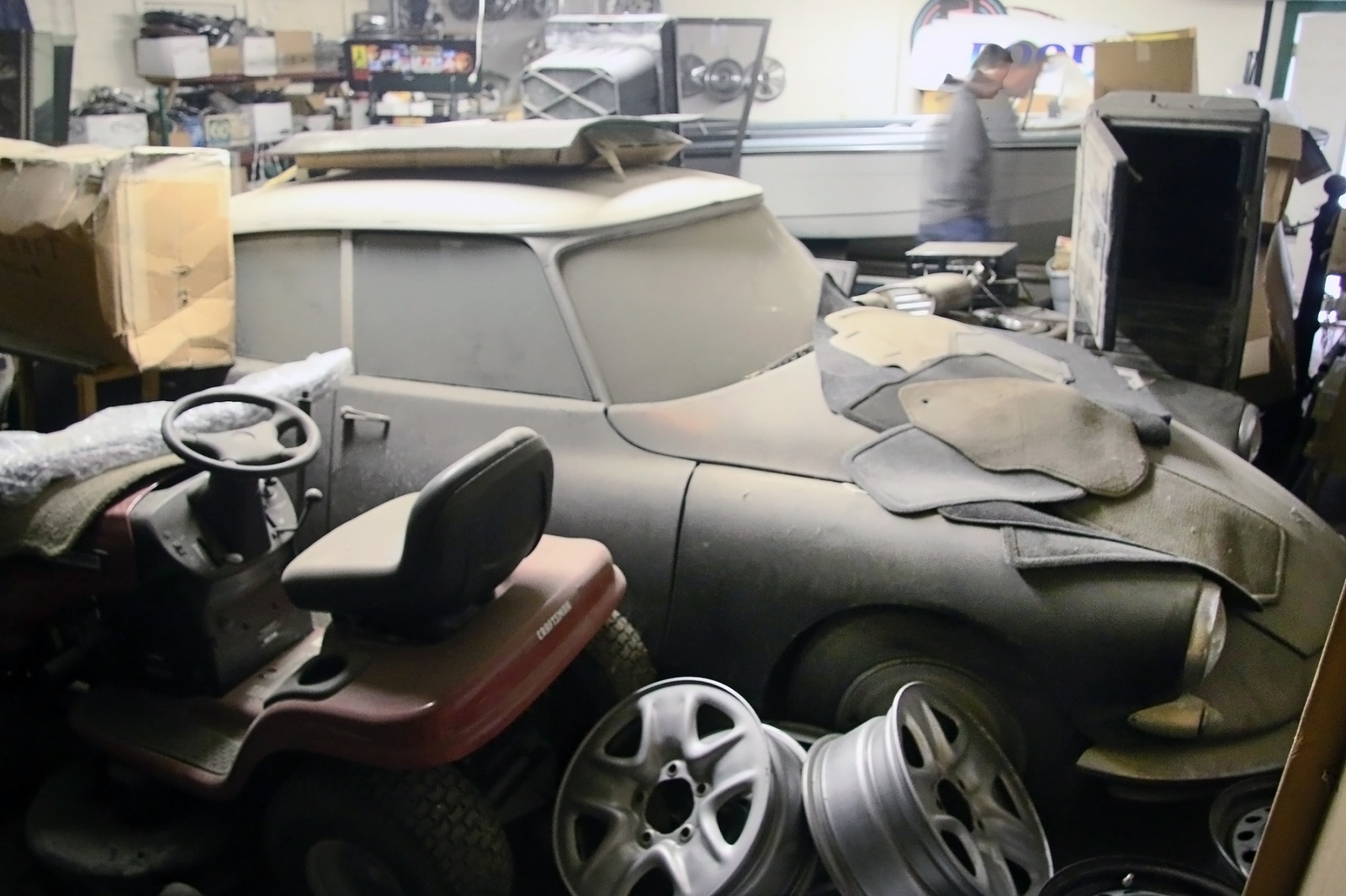 In a building in back of the showroom was a Citroen DS in what appeared to be very nice condition, but it was partially-covered and surrounded by parts and other things. Also there was another perfect boat in there.