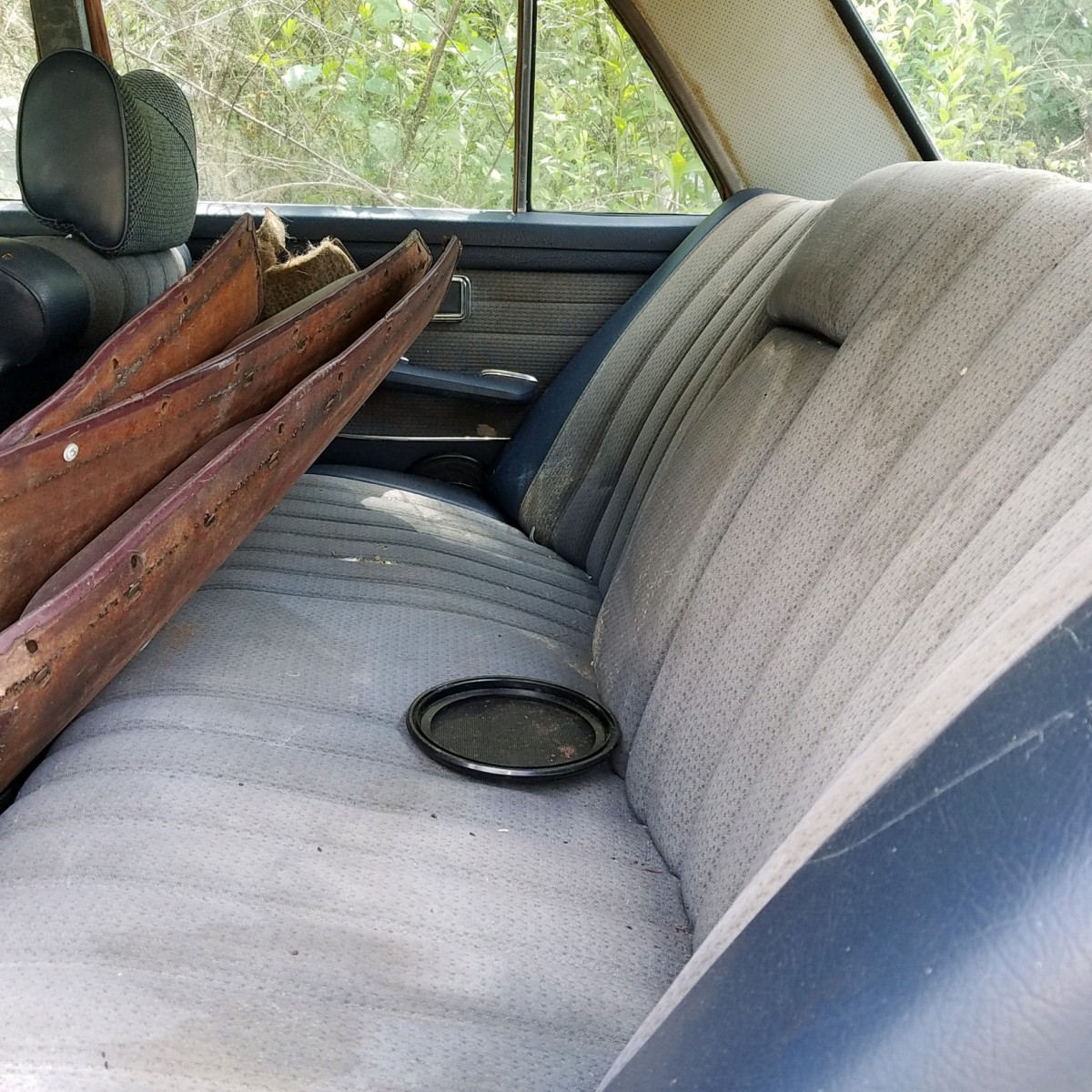 Mechanical Condition: While all of the Mercedes were believed to be running when parked, none of them currently fire up. The model designation of the black car is unknown; in addition to the 280SE, there is a white 280SEL with the 4.5L V8. This is the interior of that car, which you can see retains excellent wood trim, an original Becker radio, nicely preserved leather seats and an uncracked dashboard. Floormats have kept the carpets in nice shape and note the floor-mounted shifter. As you’ll see in the gallery photos below, the other two Mercedes have extra parts included, although most are believed to be chrome trim and interior panels for the partially disassembled sedan.