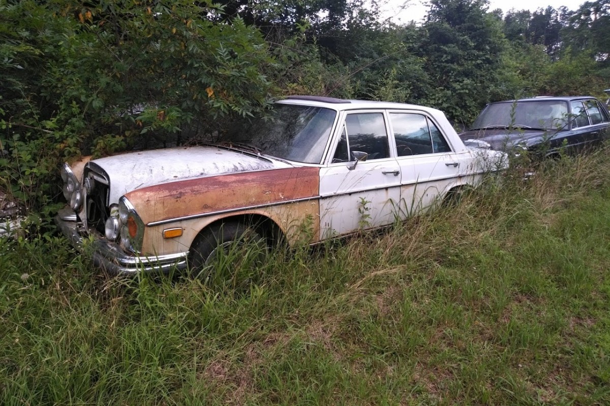 As some of you likely know, I am helping to clear out a large collection of salvage and project vehicles from a private owner. You can read more about the collection here. As we move ahead with the process, I’ll be listing some of the more interesting cars individually, which will also help readers see more info about specific vehicles they may be interested in. Here’s the next set of vehicles we’ll feature, which is a three-car offering of Mercedes-Benz W108 sedans loaded with good parts for road-going cars.