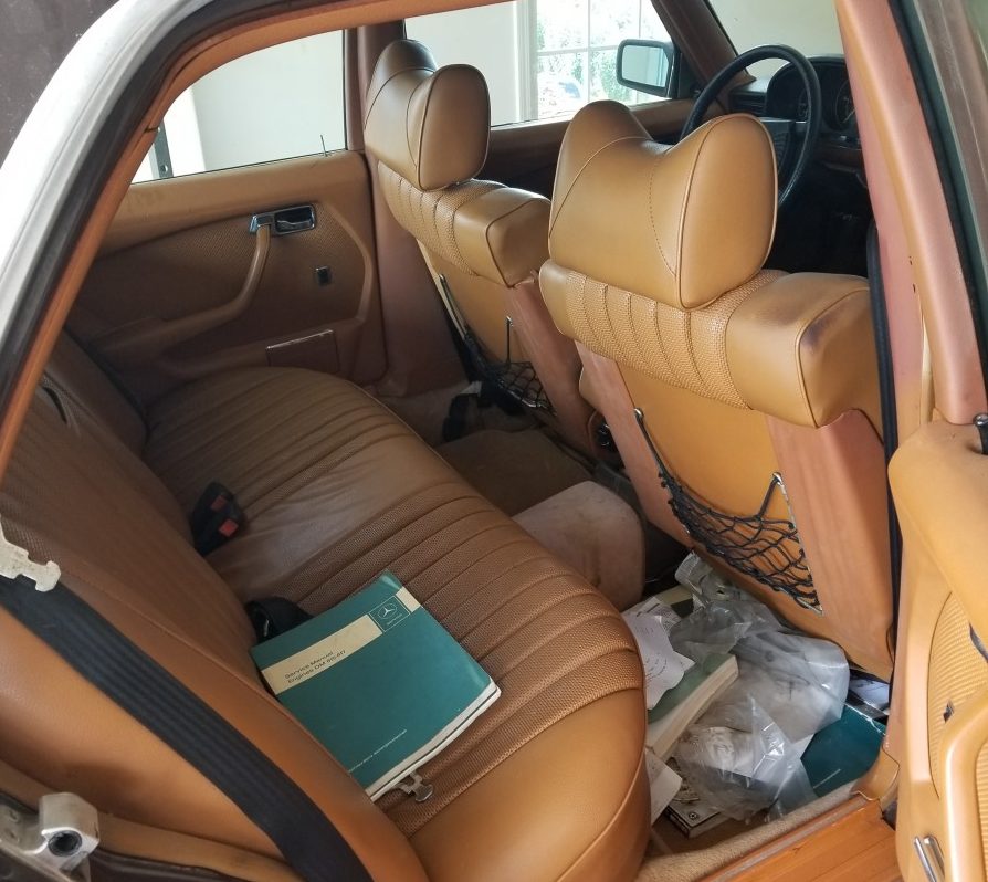 Mechanical Condition: The 1984 W123 300D seen here was once a reliable daily driver before disaster struck. According to the seller, “I have a blue 300D that has the engine removed and disassembled. I was changing the timing chain with the help of my wife one day and I told her, “‘Whatever you do, don’t let go of the chain while I rotate the new one in!’ What did she do? She let go and the chain got jammed in the valley. Out came the engine and had to be taken apart. This car ran great before this and I would regularly drive it to Alabama and South Carolina. It is almost completely disassembled with a box full of new parts to reassemble. New timing chain, new guides, new seal kit. Lots of stuff to put it back together.”