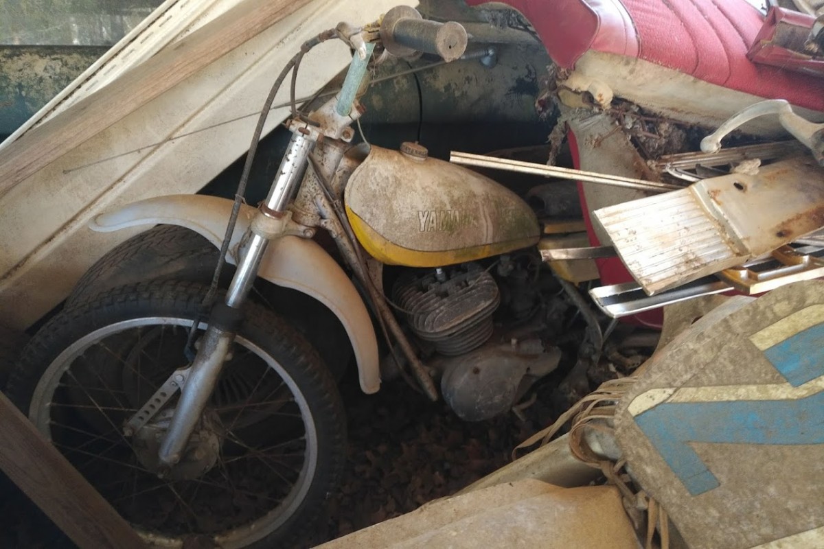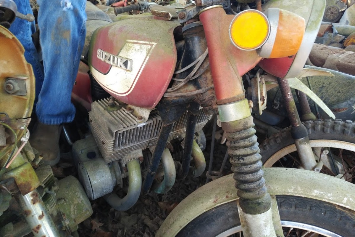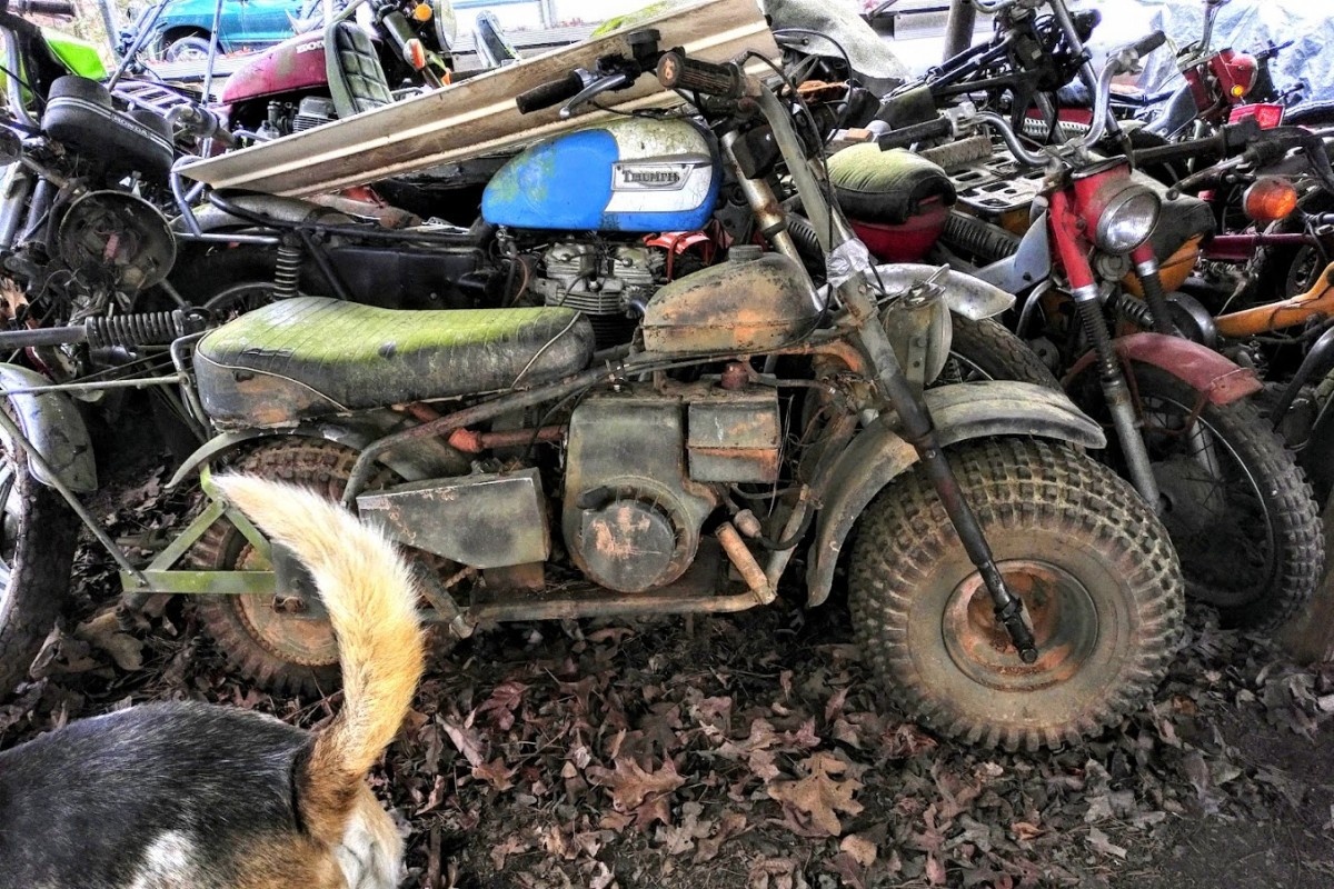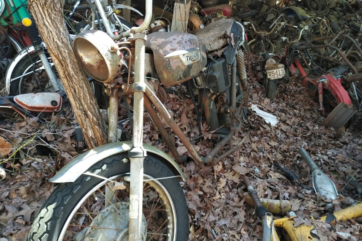 I agree, some fun stuff, except, having them outside makes them more of a project. By looking at this, it’s amazing how many motorcycles were bought and ridden, and then, nobody wanted them, and they end up in piles like this. I think the oddball dirt bikes ( Rickman, Maico) will be worth having, because they are so rare, the Suzuki GT380,( probably stuck, time sitting is not kind to 2 strokes) Suzuki was one of the last to run 2 cycle street bikes, and the Triumphs, always neat, no matter what condition. Parts, like CDI boxes and seals, engine parts, could be a hassle. I’d say the Triumph is the best of the lot.