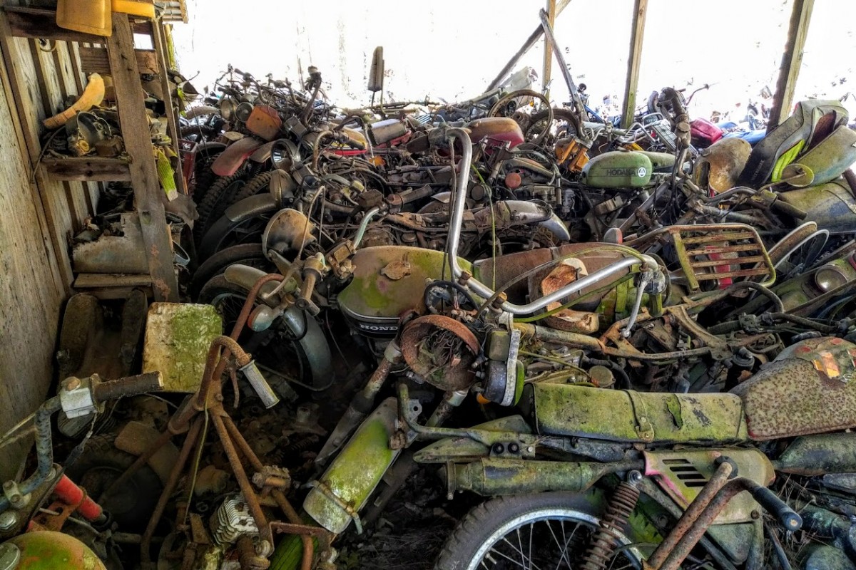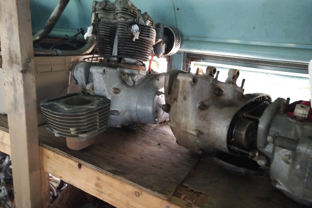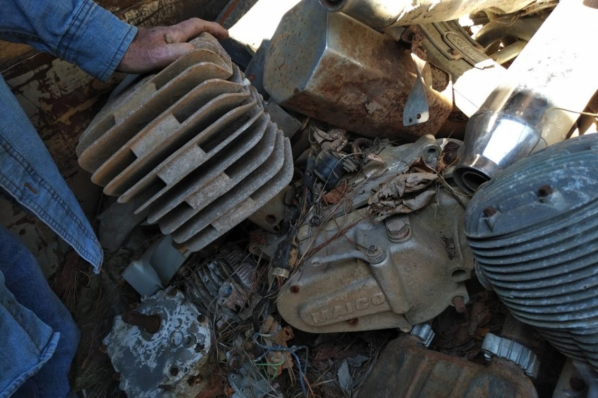 Another set of interesting engine parts include this vintage Maico engine, which we’re working to confirm any identifying numbers on the engine housing itself. I know *very* little about these, other than the individual components seem to bring fairly strong money on eBay – so there’s likely an audience out there somewhere. Take a look at the gallery photos below, which includes another set of Triumph engines, a Triumph frame, a Rickman frame, several Honda and Kawasaki motorcycles, and more. Feel free to help identify any of the mystery finds and please email me if you’re interested in any of the bikes or parts featured here.