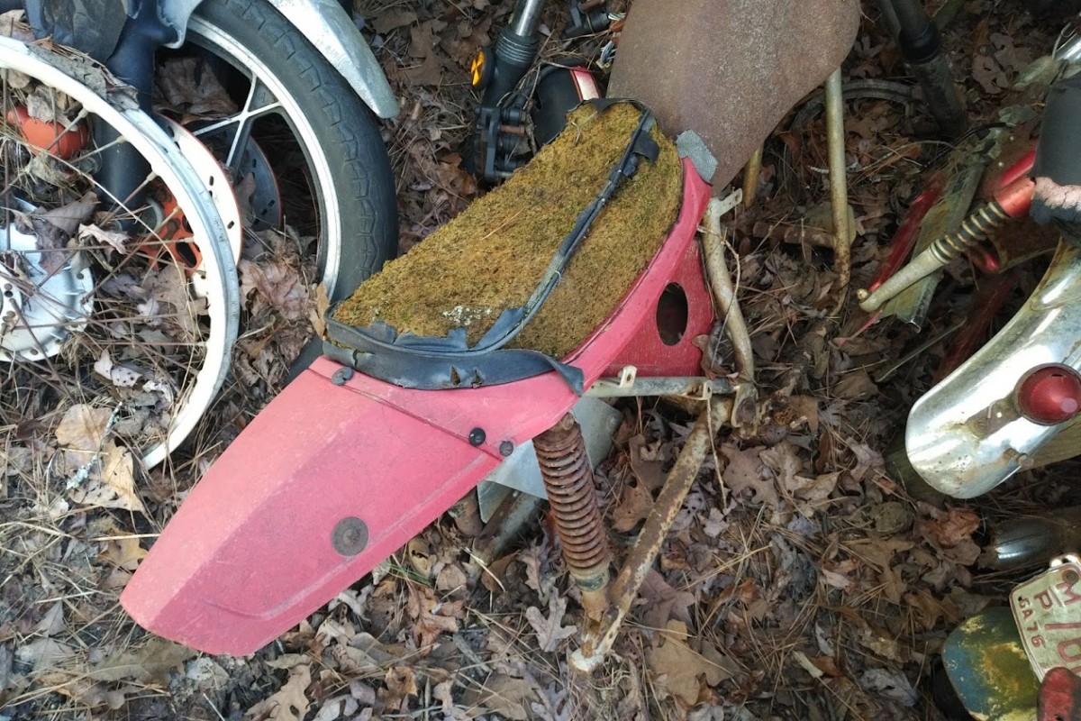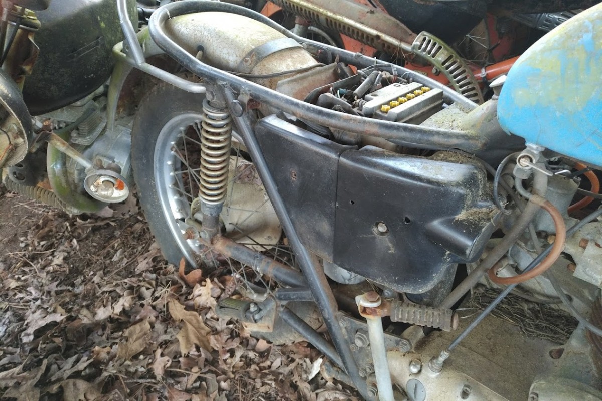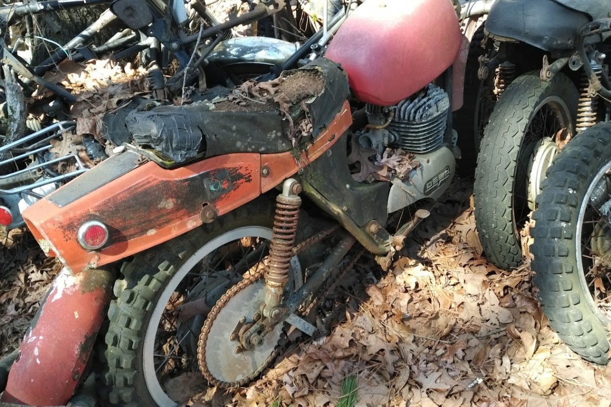 Mechanical Condition: It ranges, but assume most to be projects. In all honesty, with the exception of some of the bikes mentioned here, these are parts bikes for other projects. This is a fairly rare Ossa Pioneer 250 (I believe) but it’s been sidelined for a while, and the up-close pictures below reveal a hole in the engine case. Still, given the relative obscurity of the bike and its loyal fan base, there could be good parts here for a more worthy project.