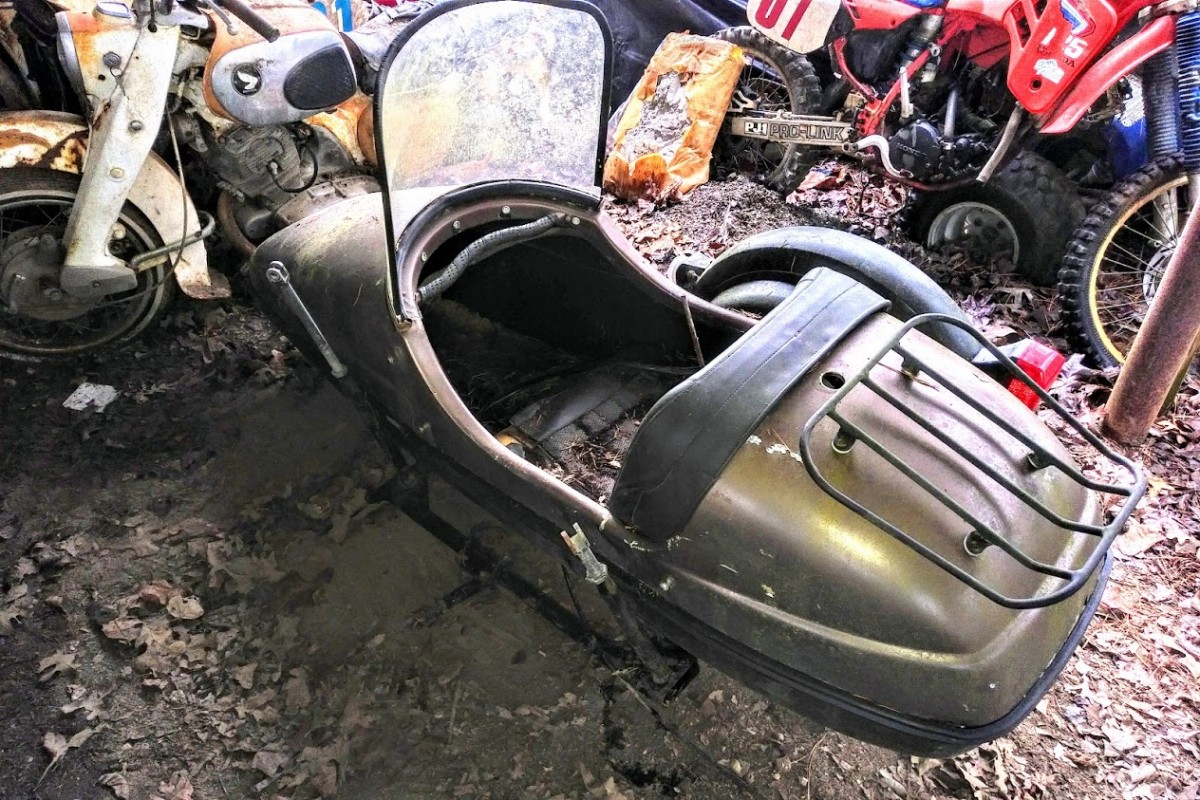 And now for something completely different: a rare Velorex motorcycle sidecar. My uncle spotted this when reading one of the first articles and I took a closer look this time. These are fairly desirable motorcycle accessories, and this one is in excellent condition with its original hardware in the rear storage compartment. It would look wicked on a period motorcycle, and if I had one, I’d be sorely tempted to keep it for myself.