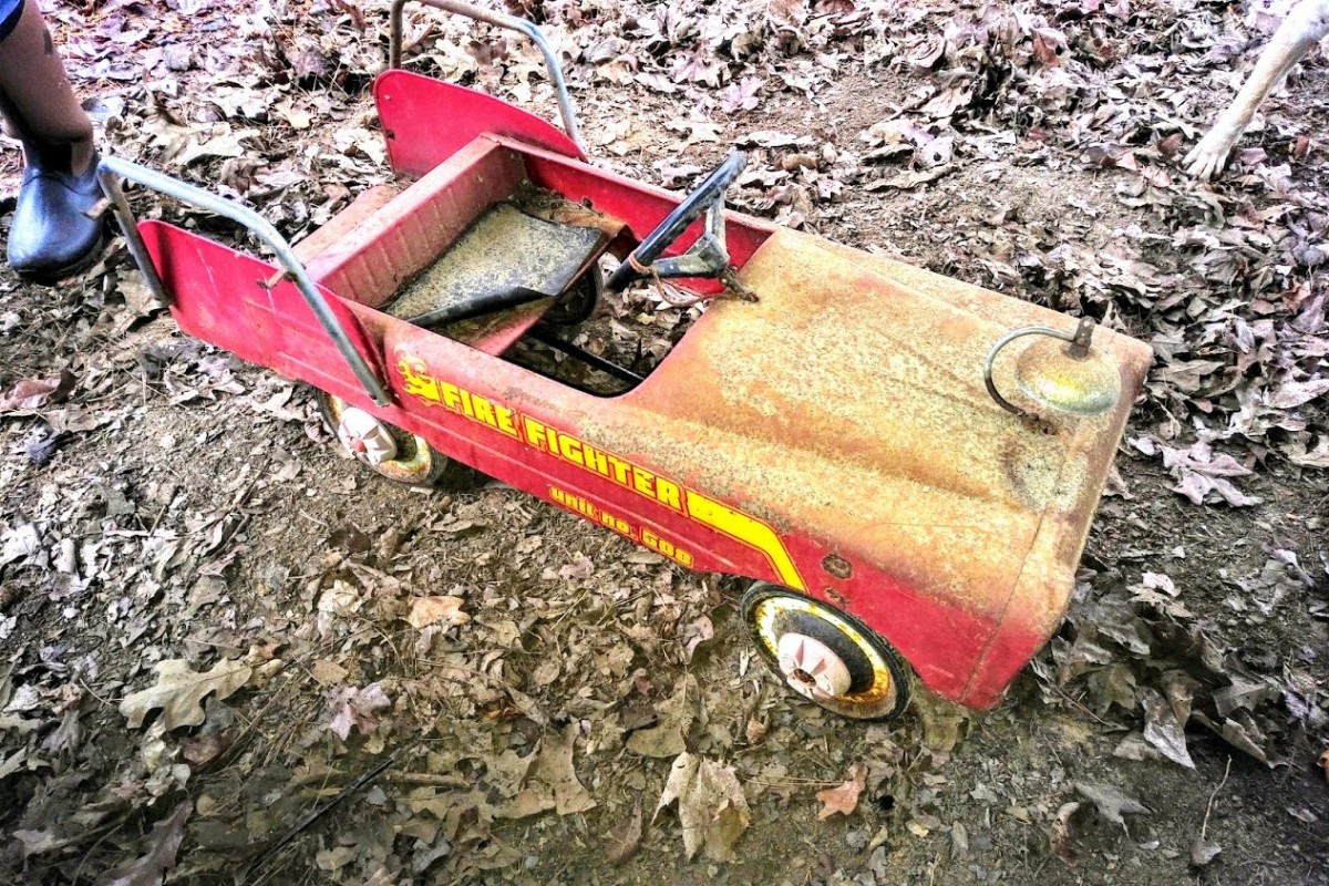 Dave, snakes were just one of the dangers we’d face roaming around junkyards where I grew up in PA, we also had spiders, poison ivy, thorns, mosquitoes that would breed in water that collected in old tires, and rabid raccoons, among other hazards. Some neat stuff in this Georgia yard, I like the kiddie fire engine!