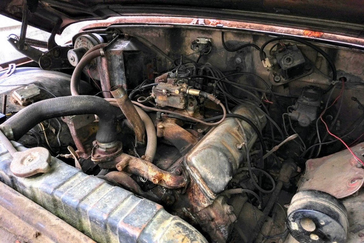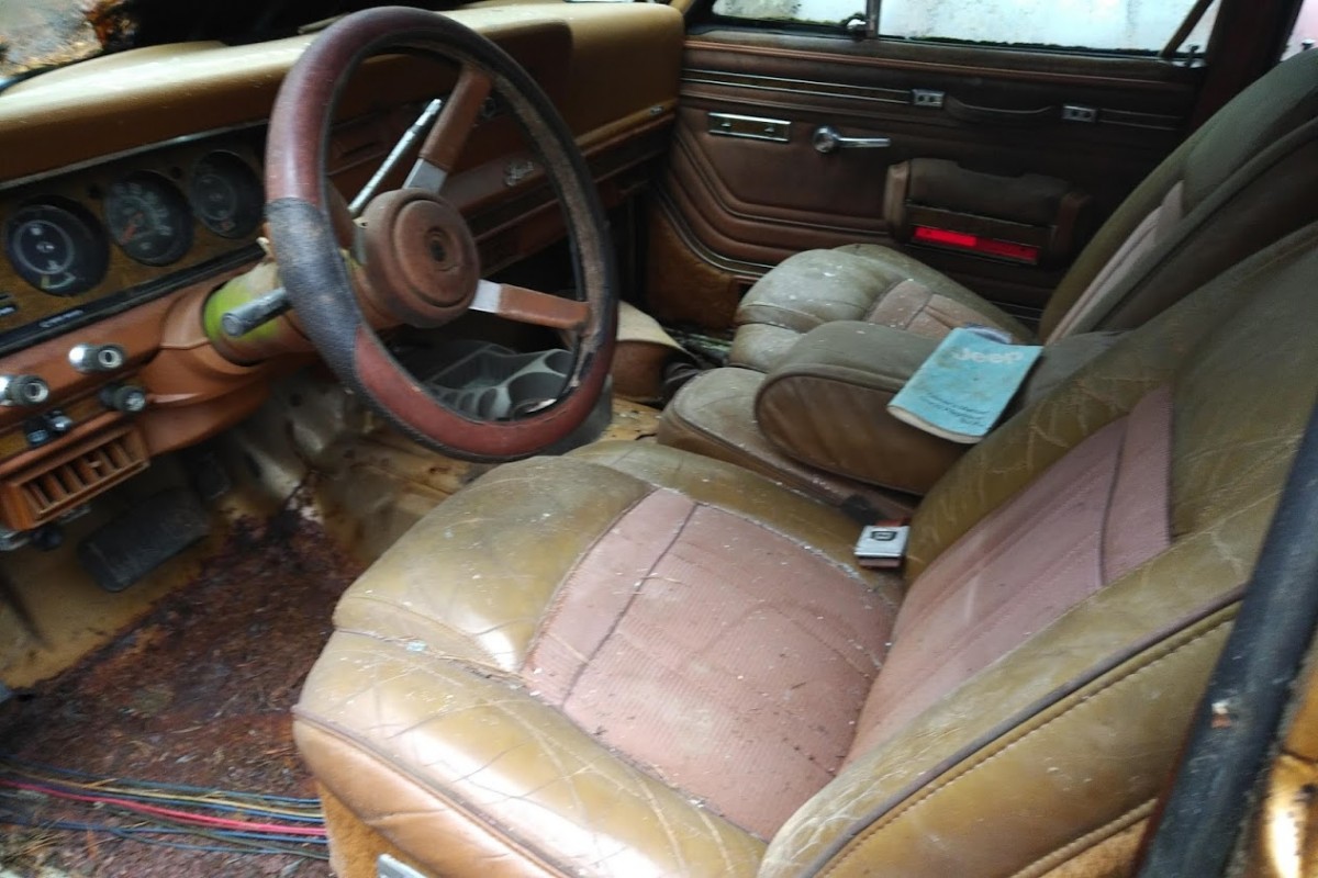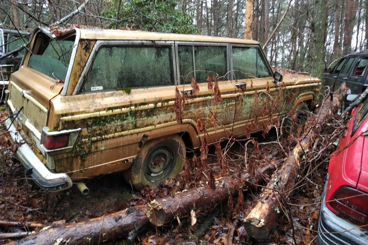 This one broke my heart a bit, as it’s a Jeep Wagoneer Limited that was in fine shape before a tree bent the roof. As you can see, it landed dead-center, but the amount of factory equipment that came on the Limited models may make this one appealing as a parts car. The interior is in much better-than-expected condition, and the locking rear end is still with the truck. There’s another Wagoneer parked next to it with less attractive cosmetics but no significant body damage.