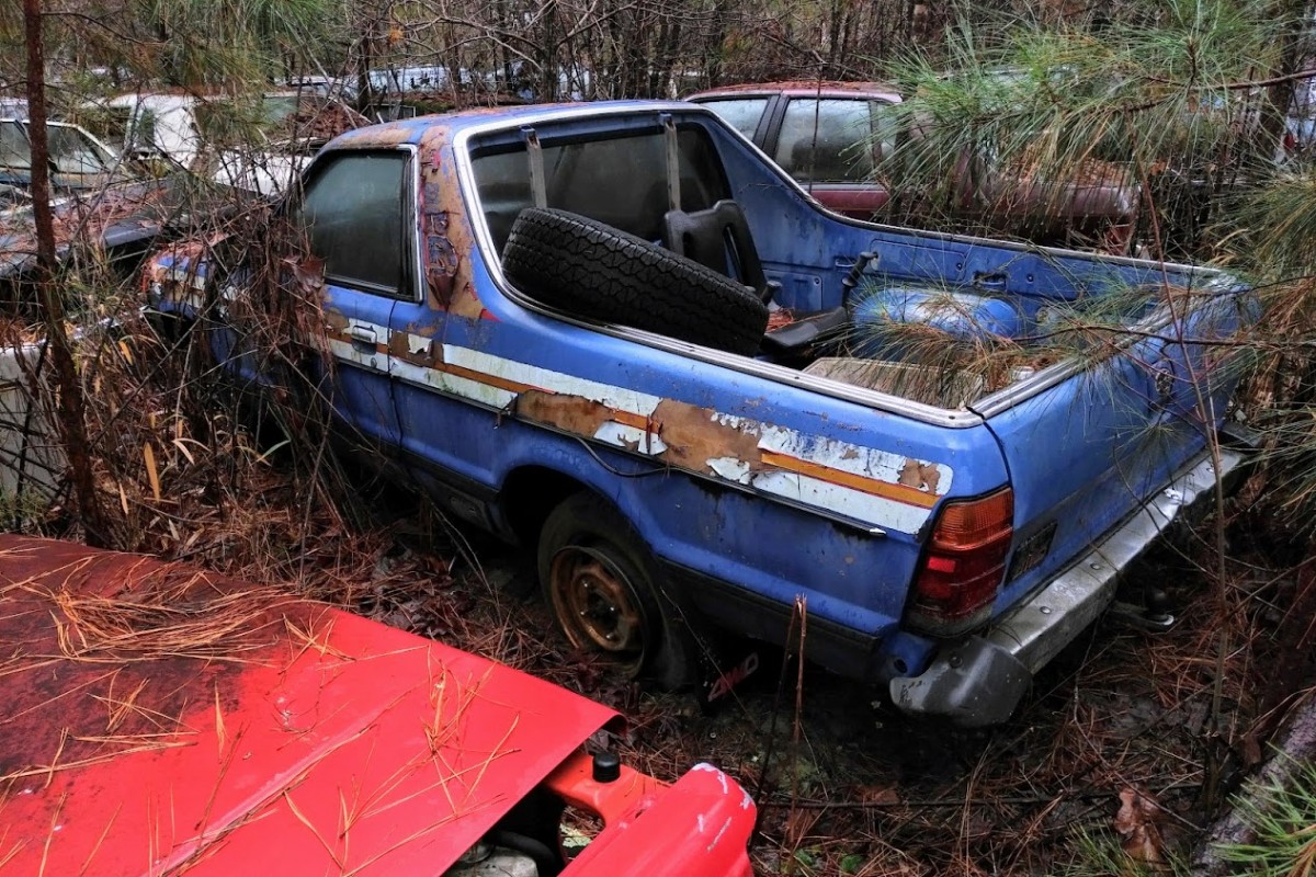 A Subaru BRAT recently sold for a record-setting price on Bring A Trailer, so I thought I’d feature this one as it’s a complete car with its original rear jump seats still in the bed and faded but correct factory graphics still holding on for dear life. The interior is surprisingly complete and this BRAT was a runner when it came into the yard. The lower sills looked surprisingly rust-free. There’s also a second parts car that can be included as part of a package deal as well.