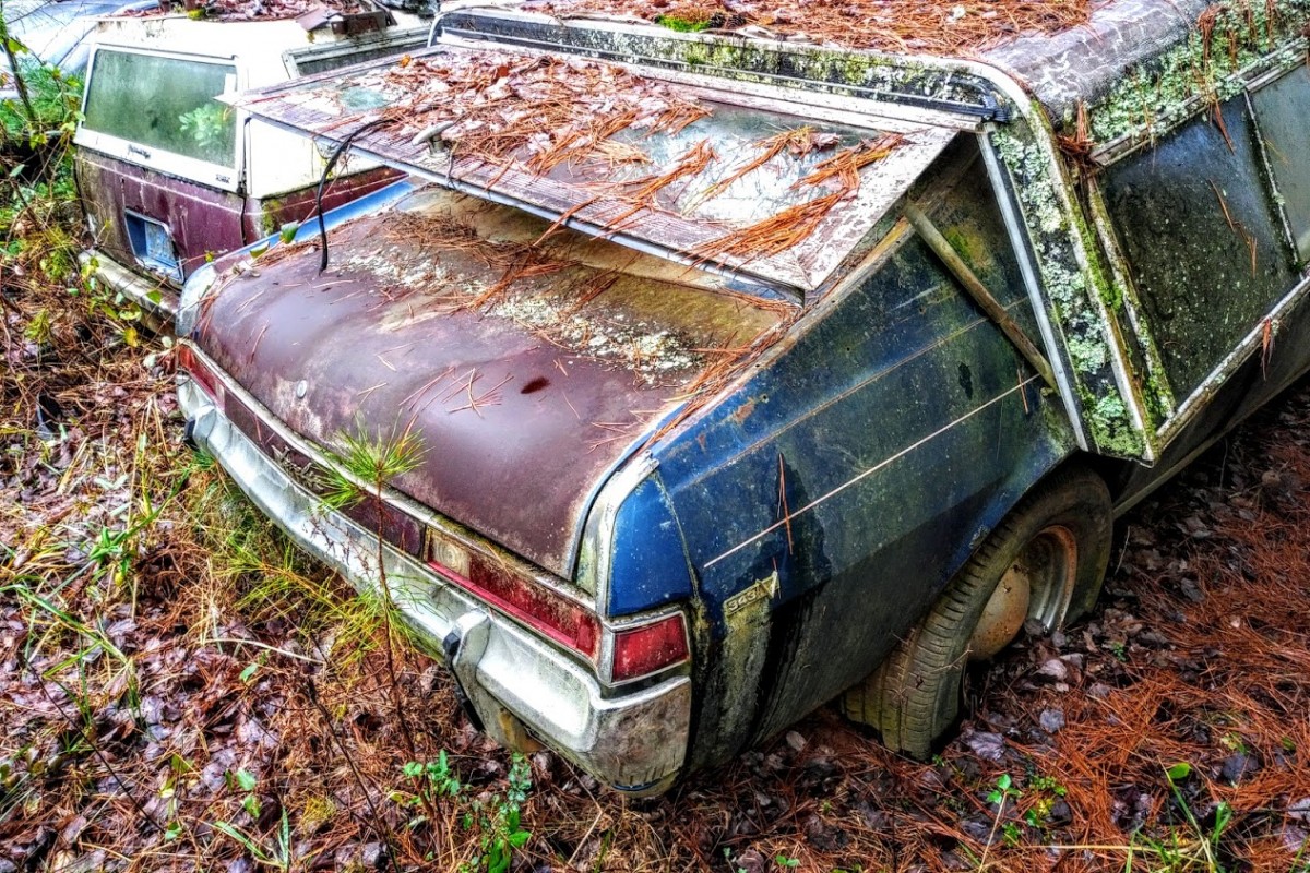 Jeff, thanks for writing this up and providing photos. I don’t do much “junkyarding” but I do enjoy looking at junkyard pics. To me it is fun to visualize the vehicles when they were new(er), and to imagine how they were a part of the lives of their owners. Perhaps these cars and trucks exhibit a new form of patina: pine straw.