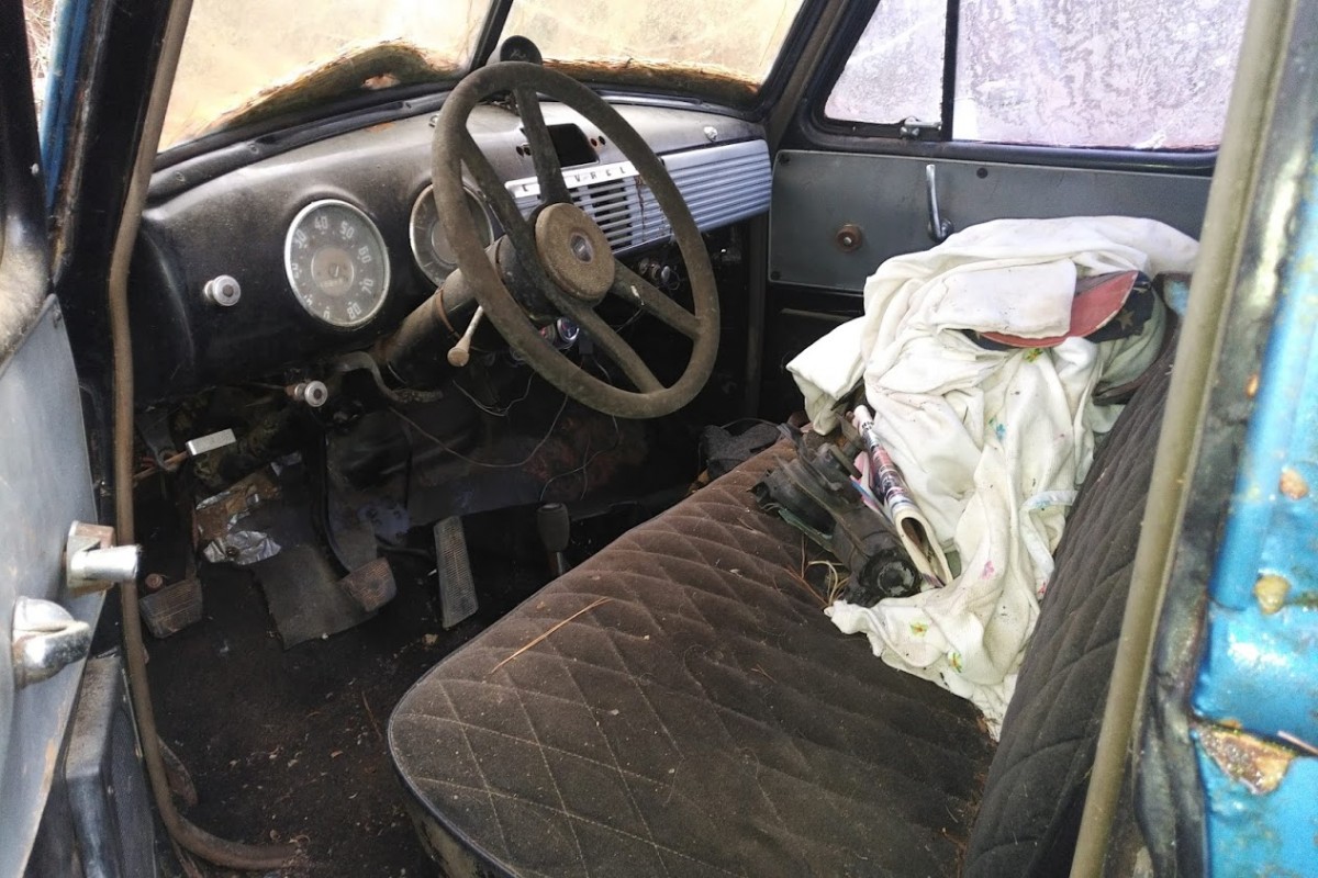 I hadn’t spotted this Chevrolet pickup on previous trips, and it’s dying for restoration. This is a step-side bed model, complete with a spare tire side-mount and original tailgate. The truck retains its original motor and is a manual transmission example. The interior is in fair condition despite the window being down, and the bench seat and engine can be seen in the gallery photos below.
