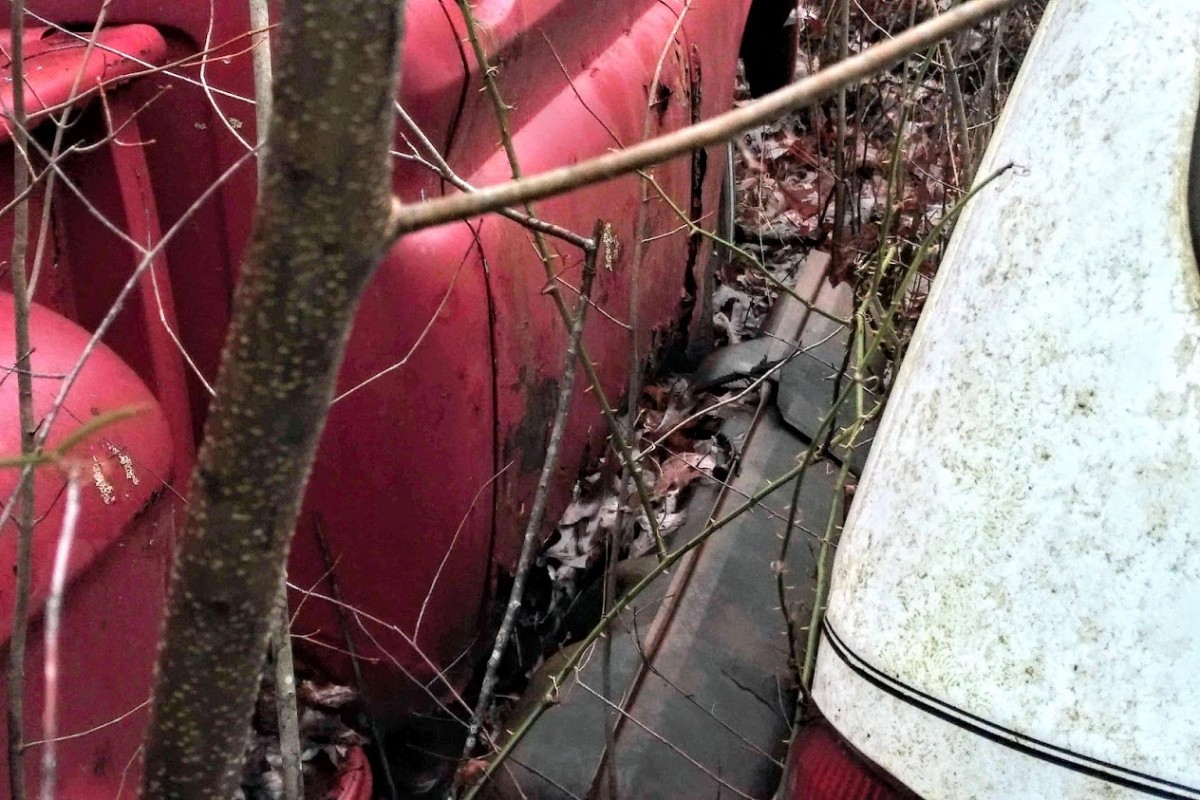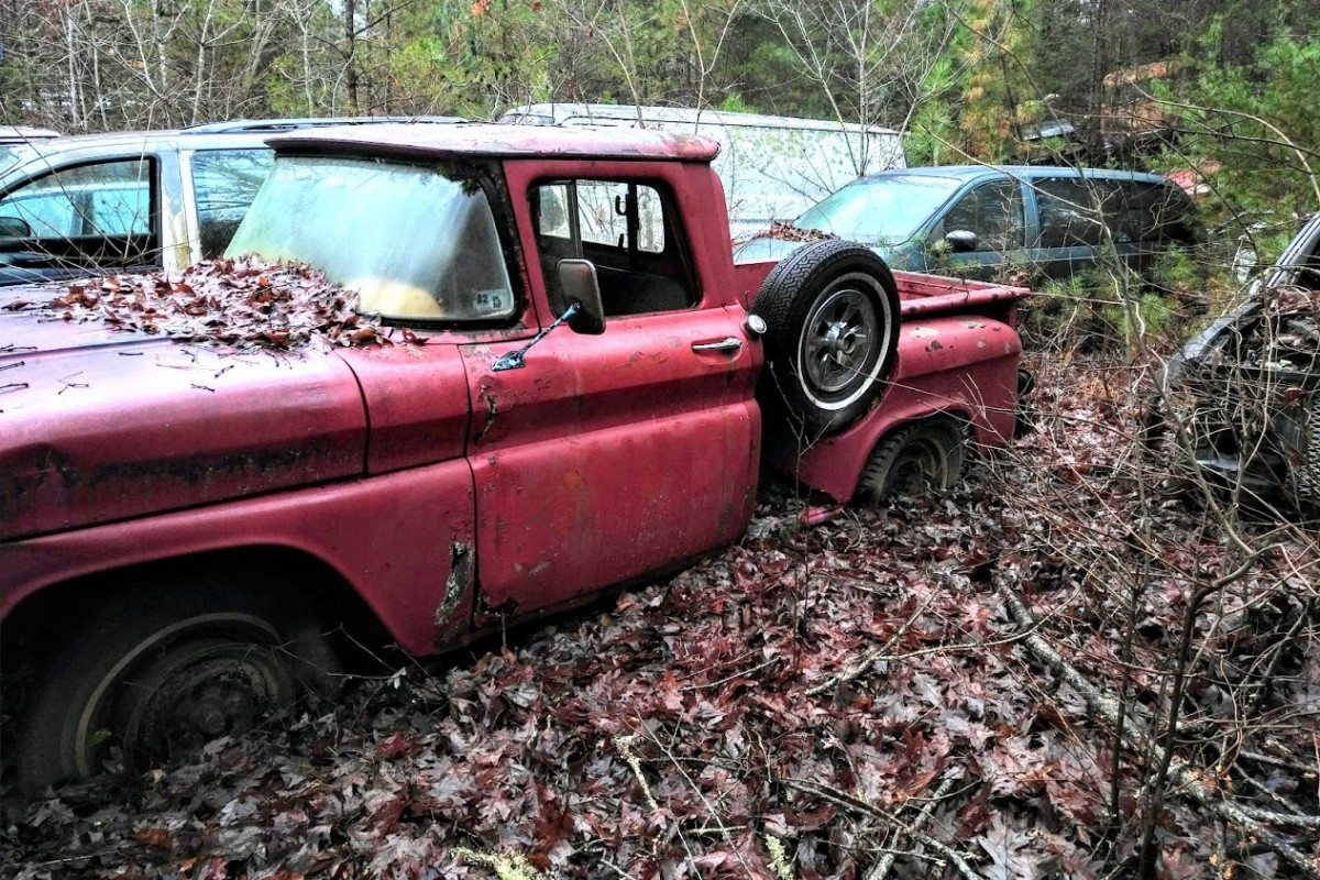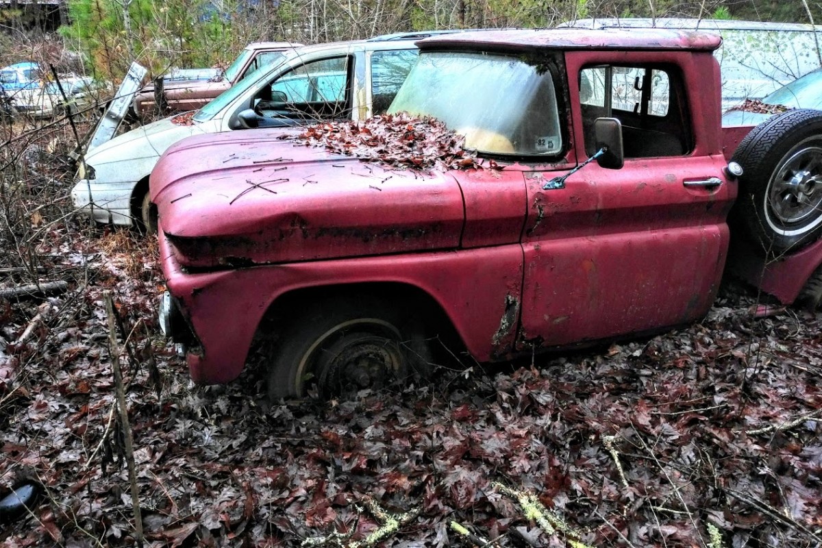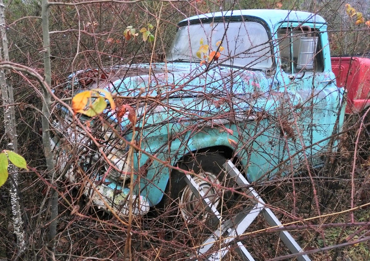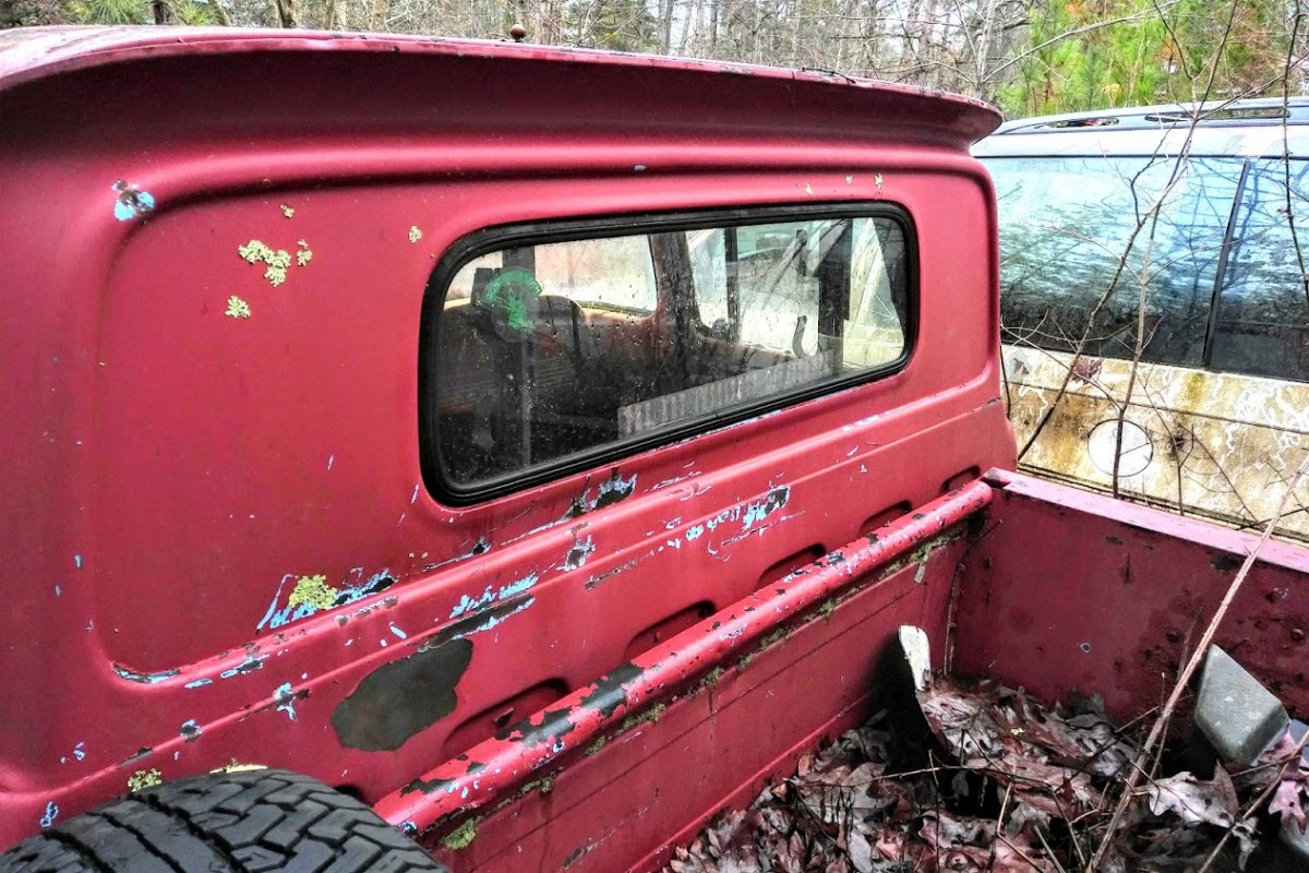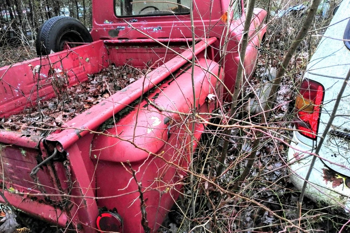 This 1958 Chevrolet Apache is one we’ll be extricating in the coming weeks. It is incredibly solid, with no significant rust and all glass and trim still accounted for. I hadn’t spotted it on previous visits, but with the leaves down, this one was instantly recognizable as a desirable early-model pickup. Please take a look at the other photos below, and use the contact form to reach me and specify which truck you are interested in. Thank you!