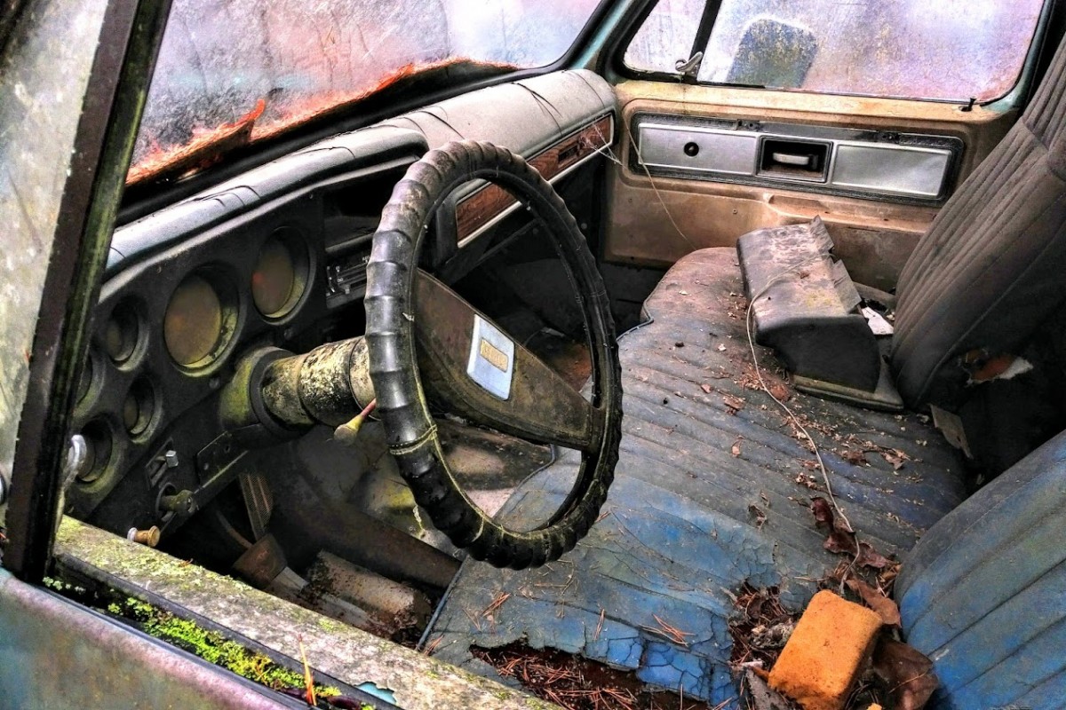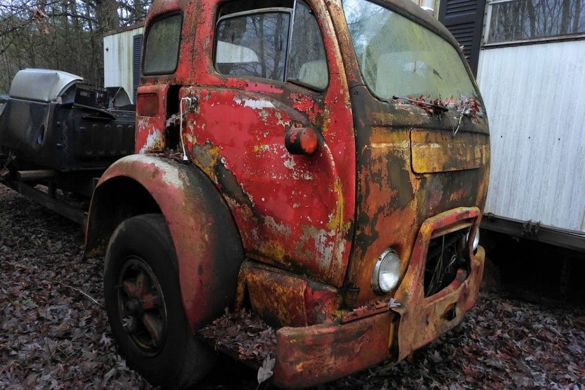 This White 3000 tractor cab is in need of love, but what a cool rig. It features the standard six-cylinder Mustang motor, which did run and drive when parked. There is some rust to contend with, but the glass is all there and the truck remains un-messed with compared to the one we recently featured – no cut brake lines or broken driveshafts here.