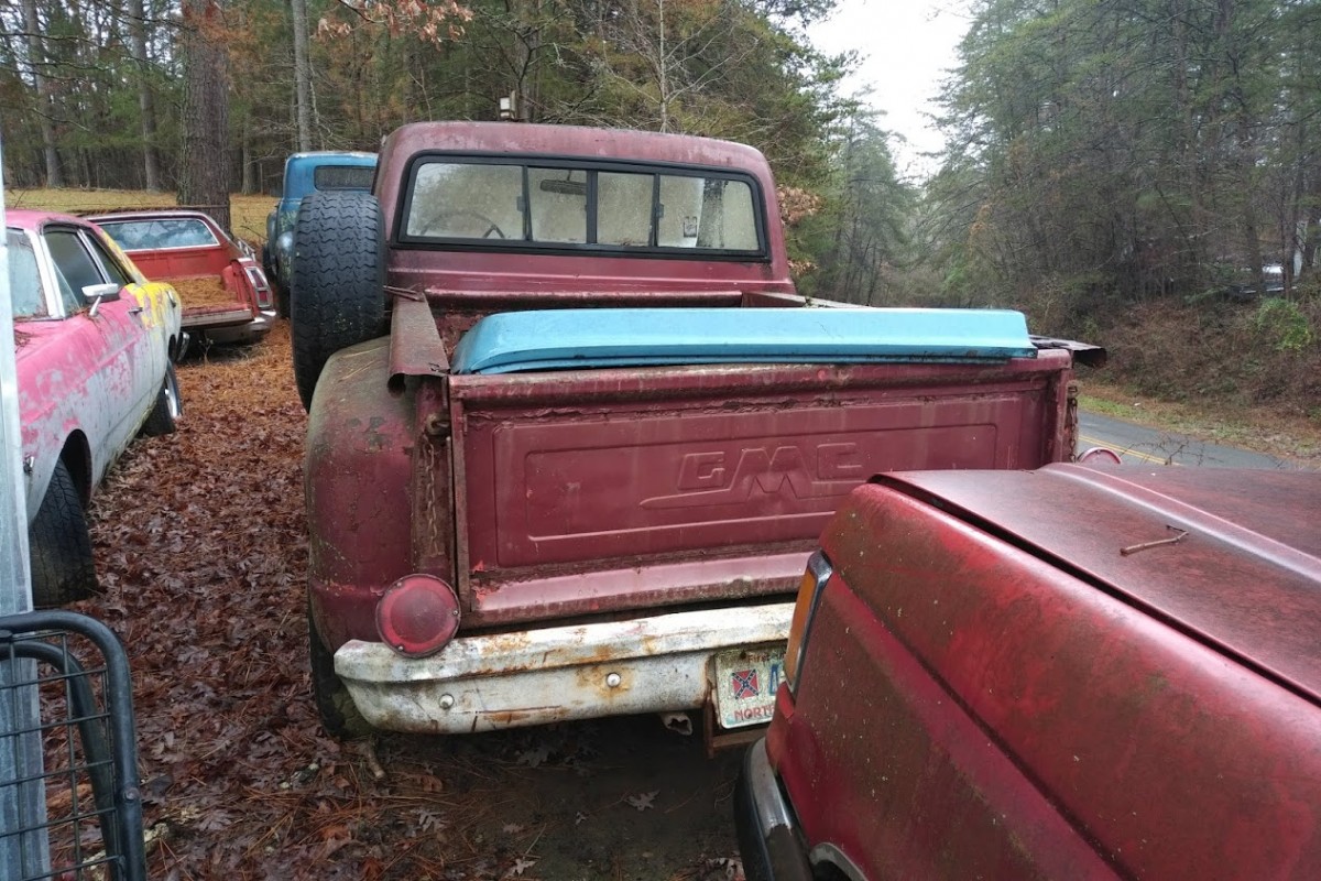 If you look at the pic of the GMC tailgate/truck, it looks like there’s a purple Falcon in front of it. Now if you look REALLY closely, there may be a black Porsche 914 beyond the Falcon.