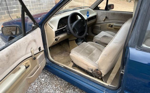 The Ford Escort GT and its sibling, the almost-extinct EXP coupe, were two respectable offerings in the burgeoning sport compact car scene of the late 1980s and early 1990s. While the Escort was not a powerhouse, the overall package was pretty slick, and if nothing else, it looked like a car that could potentially embarrass you on the back roads. The Escort GT shown here on Facebook Marketplace was apparently found after being parked since 2012, and the seller believes it hasn’t seen much use over the last several years. It’s been repainted and someone went through the trouble to put all the GT decals back on. The asking price is $5,500.