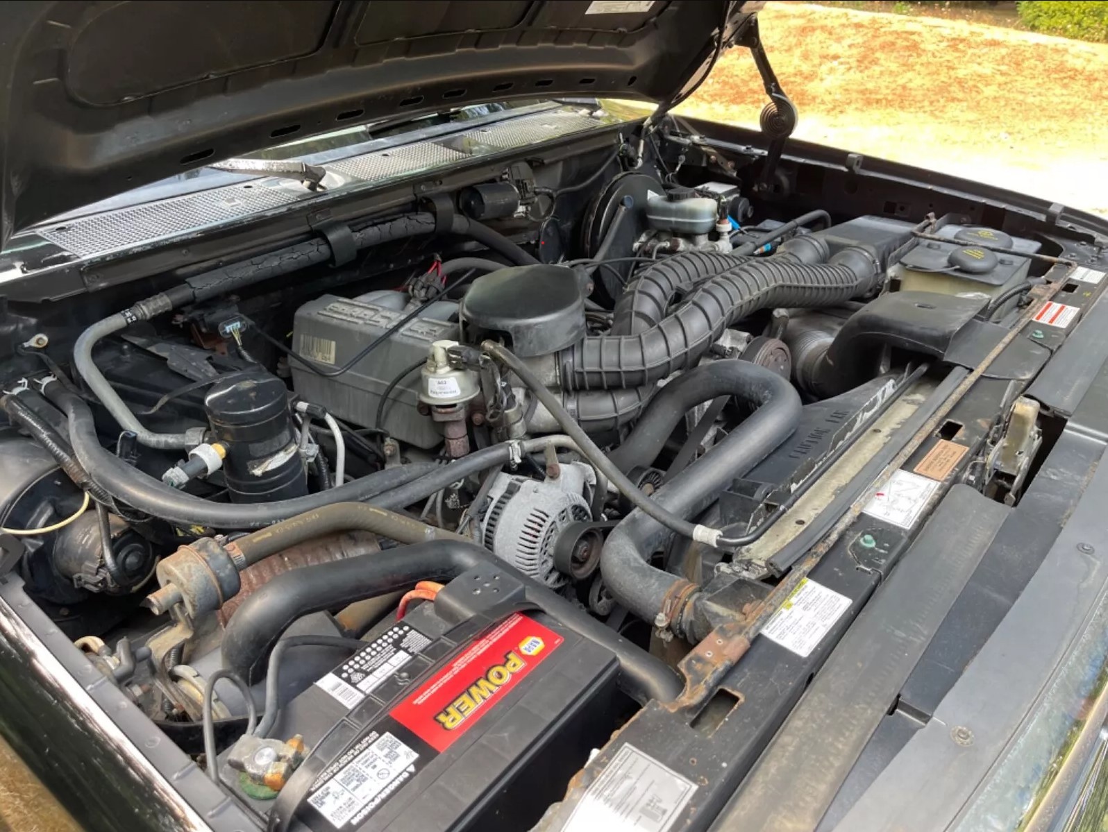Under the hood, you’ll find the iconic 5.8-liter engine that gallops along with 210 horsepower. With only 77,000 miles, this motor is just breaking in! Open the sunroof, pop in your favorite George Straight cassette, and hit the trail as the seller says this truck is mechanically sound. The only issue stated is the AC needs repair. The seller describes this as an Eddie Bauer model, but I do not see the badges nor the two-tone paint scheme that would make this an Eddie Bauer edition. The experts can battle that out in the comments if I am wrong. The interior of this Bronco appears to be in near flawless original condition, including the cassette player mentioned previously. There are no tears or wear marks on the seats, and there seem to be no stains or wear marks on the carpet. I am not a fan of what appear to be vintage American Racing wheels, but they definitely go with the ’90s vibe of this truck.