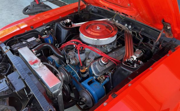 Hmmm, unless my eyes are deceiving me this looks like a windsor engine. Unusual to see a 351W with a 4 speed, especially since the “grocery getter” 351W in 1970 only came with the 2 barrel carb, and only on early production units at that. Other than that, this is a beautiful car, not too many nits to pick. I can count on one hand how many of these I’ve seen with red interiors.