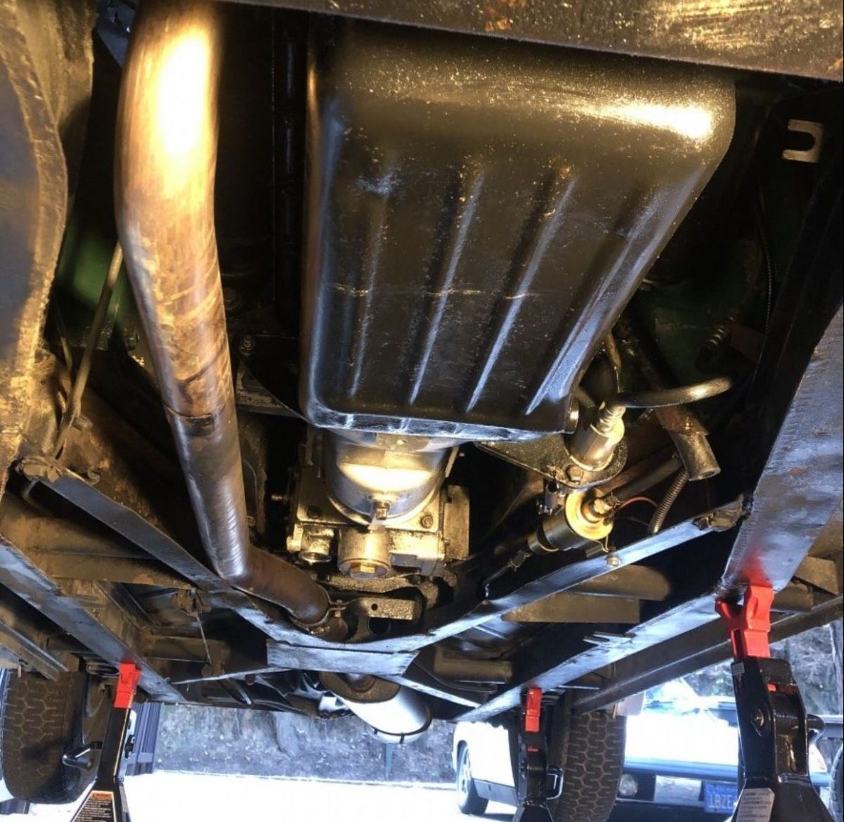 Yes, it has the original air filters. There are two non-original parts to the engine. It has a TR6 fan and an electric fuel pump bypassing the original mechanical fuel pump which is still in place.