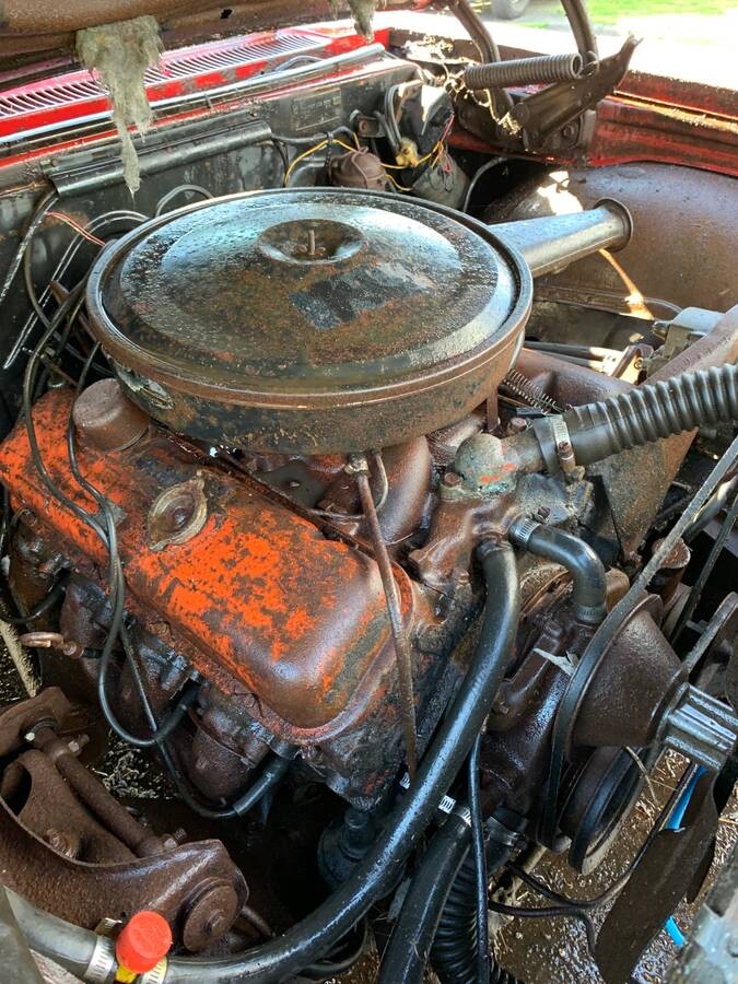 Rust may be the biggest headache. We’re told that all the floorboards and trunk are loaded with rust. And the exterior sheet metal doesn’t look better in many places. the rear bumper looks to be more rust than chrome. This will be a challenging project, but possibly worthwhile when finished because of the drivetrain.