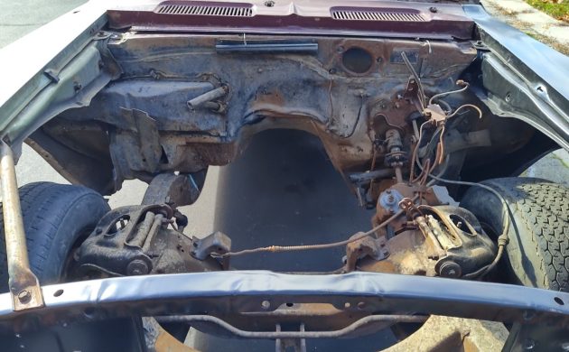 The car is being sold strictly as a project, and the seller is clear about what’s needed. The floor pan was partially removed and will need to be addressed, and the top of the dash requires replacement. On the positive side, the seller notes that the original trunk, along with the frame rails and rockers, are solid, which is encouraging for anyone who has priced sheet metal or paid a body shop for structural work. The car currently rolls and steers, which makes transport easier for the next owner.