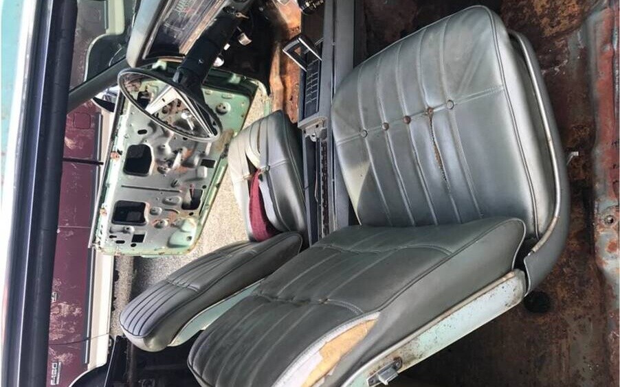 Some of the car’s better points can be found outside, as the body seems mostly complete and in pretty decent shape overall. We don’t get word on how much of that green paint is original, if any, but supposing most of it is the finish doesn’t look all that bad to be 55 years old, although someone has sprayed some primer in a few areas. The panels have their fair share of scratches and a few minor dings, with a bit of exterior rust mentioned in the lower quarters and around the rear window, but for the most part, this one seems like a decent starting point for restoration on the outside.