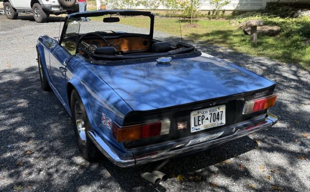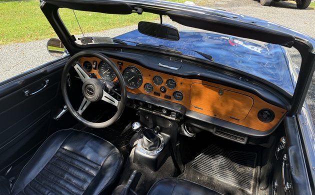 Although the TR6 featured a stunning new Karmann-designed body, its underpinnings were carried across from its predecessor with few modifications. That means that popping the hood reveals a 2.5-liter straight six, with the ’73 Sales Brochure quoting power and torque figures of 106hp and 133 ft/lbs. All TR6s received a four-speed manual transmission, and while it isn’t mentioned, I believe this car may have the optional factory overdrive for improved open-road cruising. The seller confirms that this Triumph is in excellent mechanical condition. The engine springs to life every time, making this TR6 a turnkey proposition ready for warm-weather action.