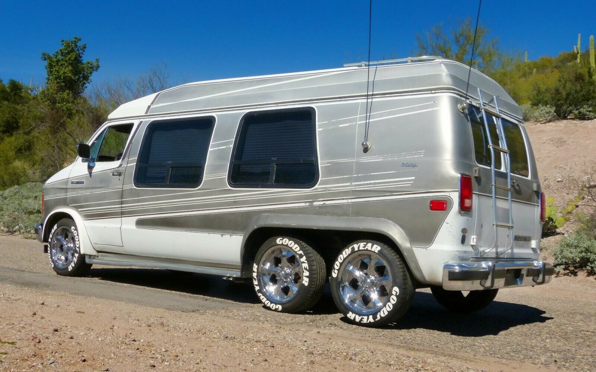 The seller says that this 1991 Dodge Ram Van is 1 of 1, a factory-built dual-axle van by Dodge. It sure would draw a crowd anywhere it went. It can be found here on eBay in beautiful Tucson, Arizona. There is a buy it now price of $13,000 and the current bid price is $6,100. Let’s check it out.