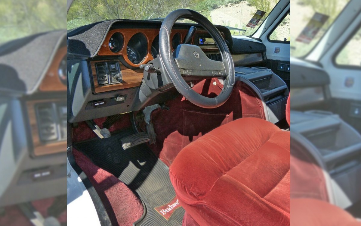 I don’t want to know the mpg of this van with that extra axle and all of that heavy wood inside. 8 mpg? There are no engine photos but they say that it has a 360 V8 which would have had around 155 hp. The AC works as does everything else. They have provided a YouTube video showing the van and it looks nice but it could use some tidying up, paint-wise and possibly interior finishes-wise. I don’t know how much the next owner will sink into it if the bidding gets close to that $13,000 buy it now price, though. Any thoughts on this dual-axle Dodge Ram Van?