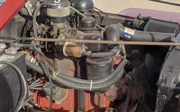 The engine should be a Willys 134-cu.in. F-head-four with around 70 horsepower and 114 lb-ft of torque when new. This one appears to be wearing a carb replacement, but the seller doesn’t give much information, other than it runs great, has good tires, and has a hydraulic leak. It’s backed by a three-speed manual sending power to all four wheels when needed. Any thoughts on this almost-too-good-to-be-true Willys pickup?