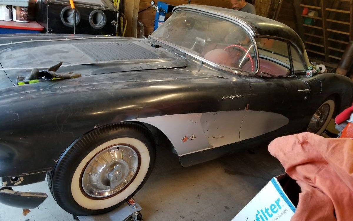 There were two different fuel injected 283 cu. in. engines available in the 1958 model year, a 250 h.p. version and a 290 h.p. version. As stated earlier, this car came with the 250 h.p. version. The original engine is missing. The replacement is this rebuilt 290 h.p. engine with a fuel injection unit from a 250 horse engine. The transmission was rebuilt also but that was back in 1982. It should be OK as long as it was full of lubricant all that time. Are there any 1958 Corvette fans out there in the market for a restoration project? Is the $50,000 price tag justified?