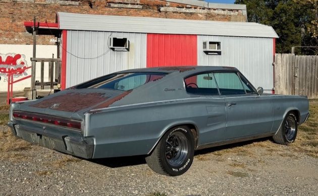 One respray has been performed during the Charger’s life, and it must have been early, as the seller states, considering the amount of wear and patina showing on the hood, roof, and trunk. It’s also said that this one’s been garaged since the eighties, with the sheet metal stated to have never been rusty, so hopefully, there won’t be much outside prep work necessary before this Charger is ready for some fresh blue paint. Those with a keen eye might notice the fender-mounted turn signals, which weren’t introduced until 1967, with the owner confirming that these components were added at some point.
