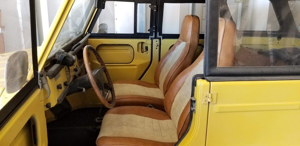 My uncle had a bright orange one back in the 80s. It has nougahide seats. Never seen another like that. Any who it was a blast. Top down, doors off , windshield down. Safe NO. but a blast