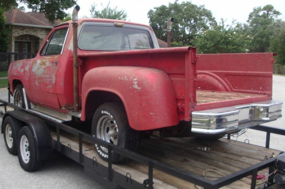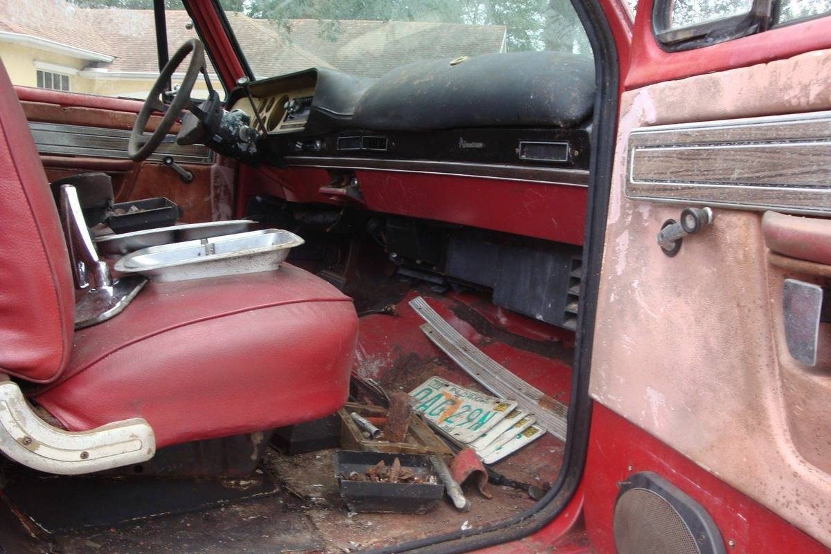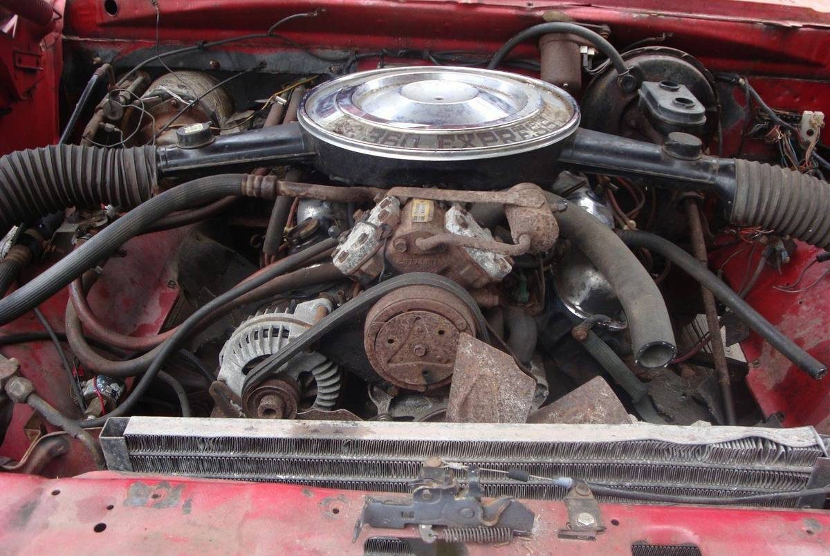 When many V8s choked up fewer than 200 horsepower, this S Code 360 made 225 horsepower, enough for bragging rights at the local burger joint… as long as that guy with the 396 Chevelle stayed home. The 3.55 ring & pinion ratio helped back up the performance image. This engine compartment looks fairly complete including the A/C compressor and dual-snorkel air cleaner housing. The missing radiator leaves us viewing the condenser only. Special models should most likely be restored to factory condition, though there’s at least one of these on the internet powered by a late-model Hemi. What’s this truck worth, and how would you like to see it put back on the road?