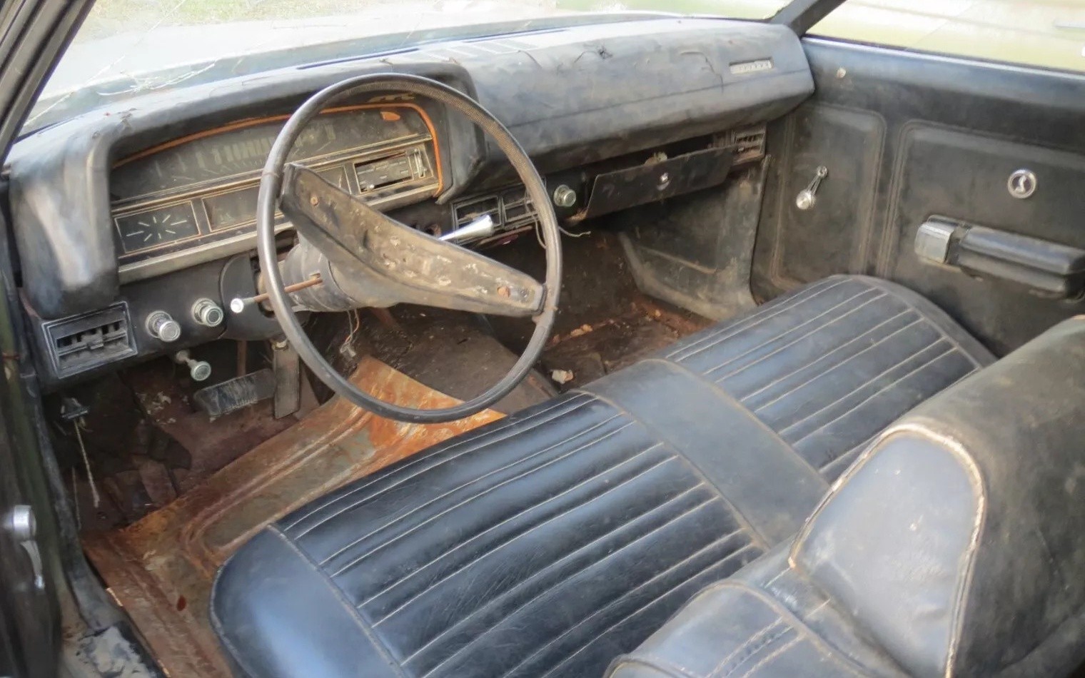 While it seems that most of the interior is still intact, it’s also apparent that much of the inside will need some sort of attention, and certainly installation of that new floor. This one’s got a front bench seat and a column shifter, which I always find intriguing on anything deemed as a muscle car, and I’m also a fan when a factory A/C system is included in the mix on a high-performance auto. Plenty of work awaits the next owner here, but hopefully, someone with the right skills will come along and see fit to save this 1970 Ford Torino Cobra. Is this one worth considering taking on as a project?